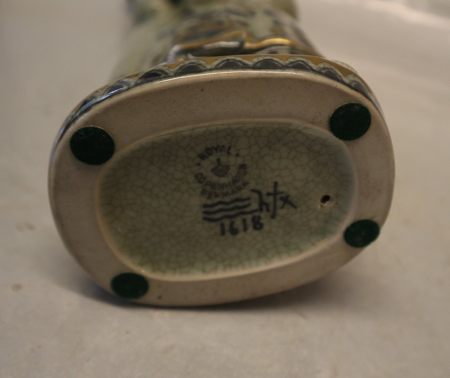 Description: Royal Copenhagen Grøn Craquelé 1618 Chineese couple 25 cm Georg Thylstrup Green Crackle