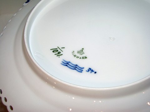 Beskrivelse: Royal Copenhagen Musselmalet Helblonde, sjælden helflad frokoststallerken.
