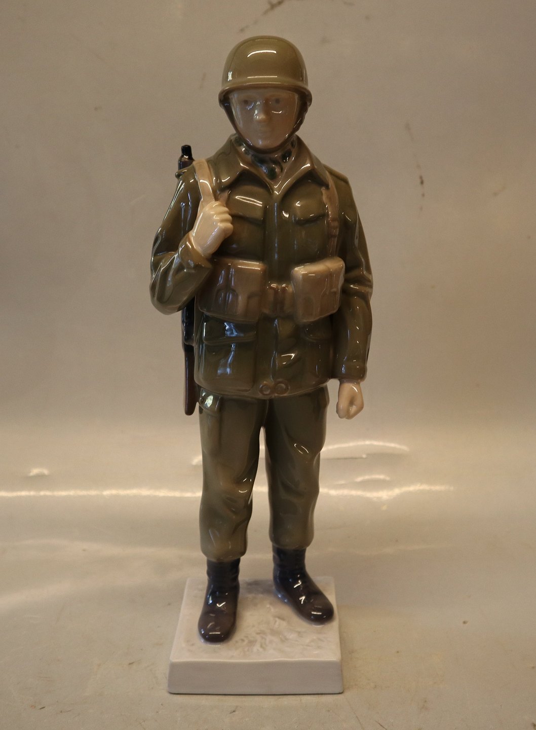 Description: Bing and Grondahl B&G 2444 Gunner - Army -soldier in uniform 29 cm Marked with the three Royal Towers of Copenhagen. Bing & Groendahl In mint and nice condition