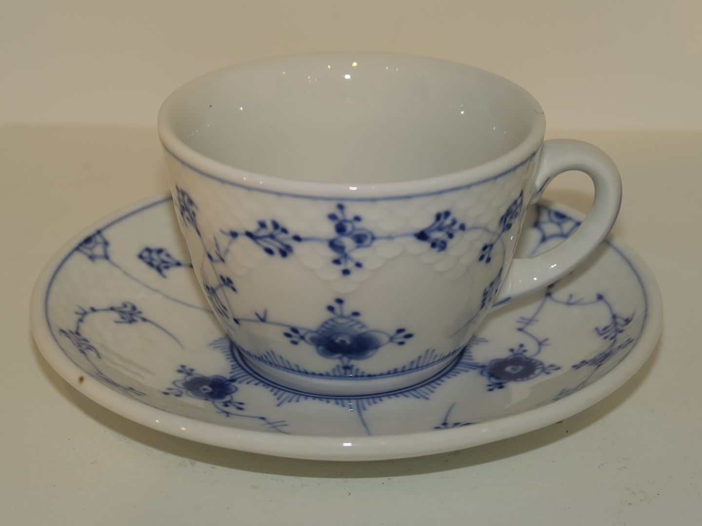Description: Bing & Grondahl Blue Traditional Hotel porcelain (Blue Fluted), large coffee cup with saucer.