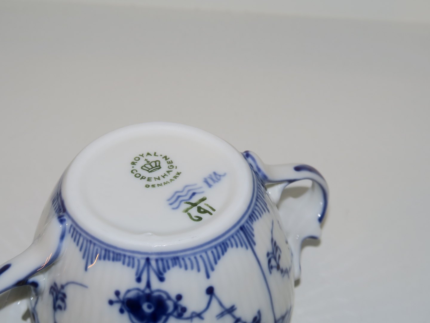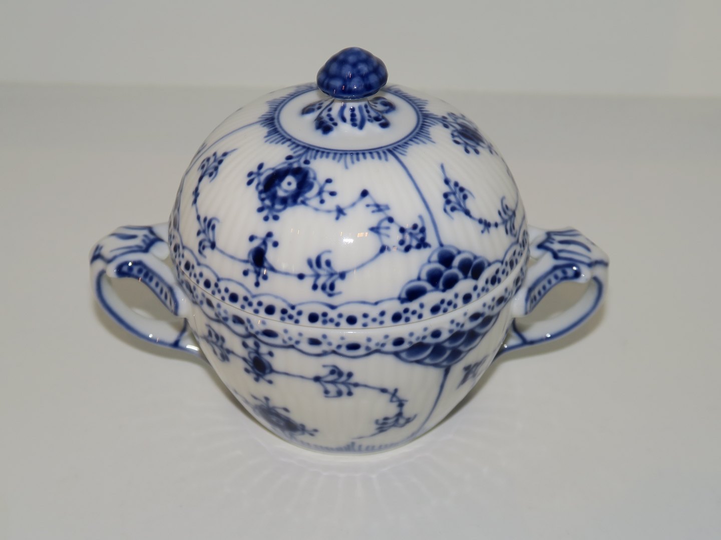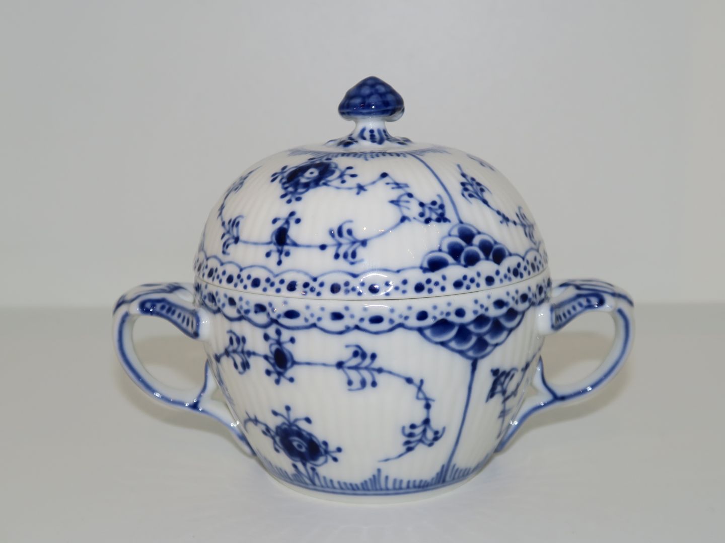 Beskrivelse: Royal Copenhagen Musselmalet Halvblonde, lille sukkerskål med låg.