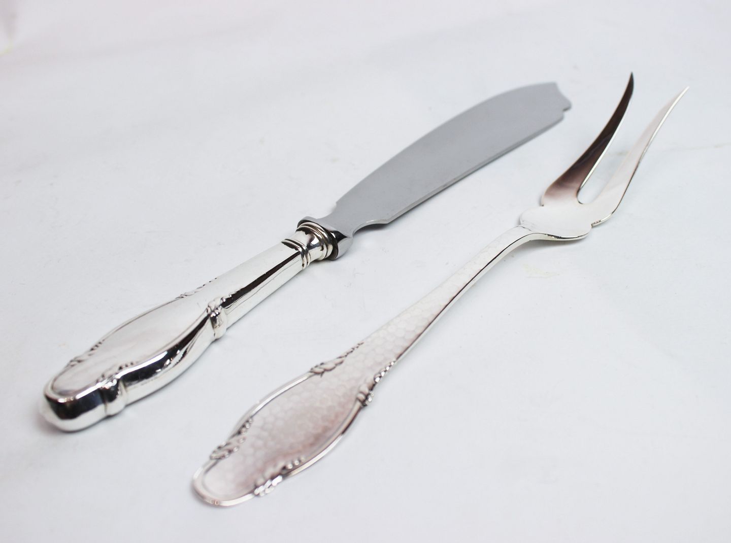 Cake knife and carving fork in Frijsenborg - hallmarked silver.