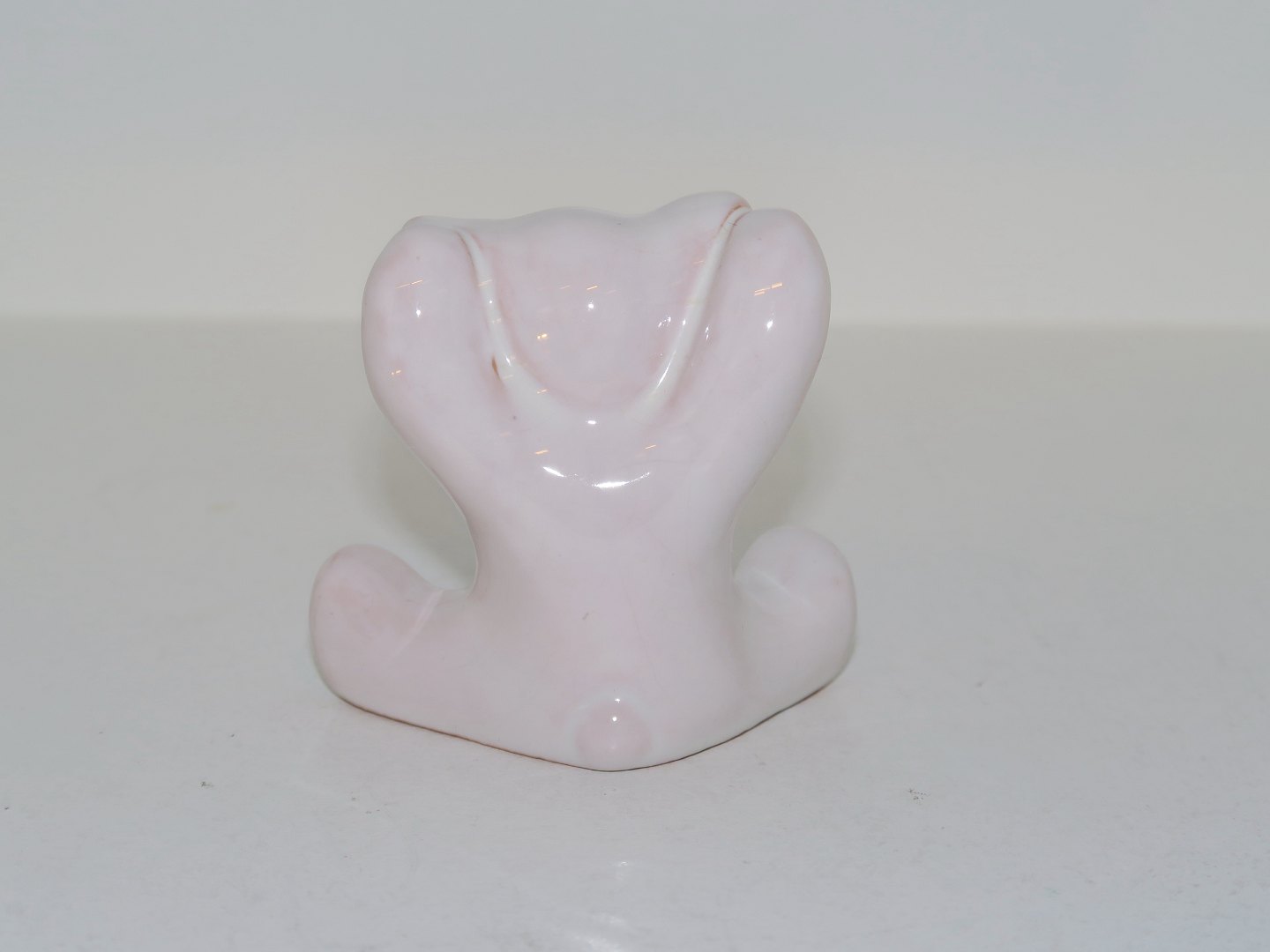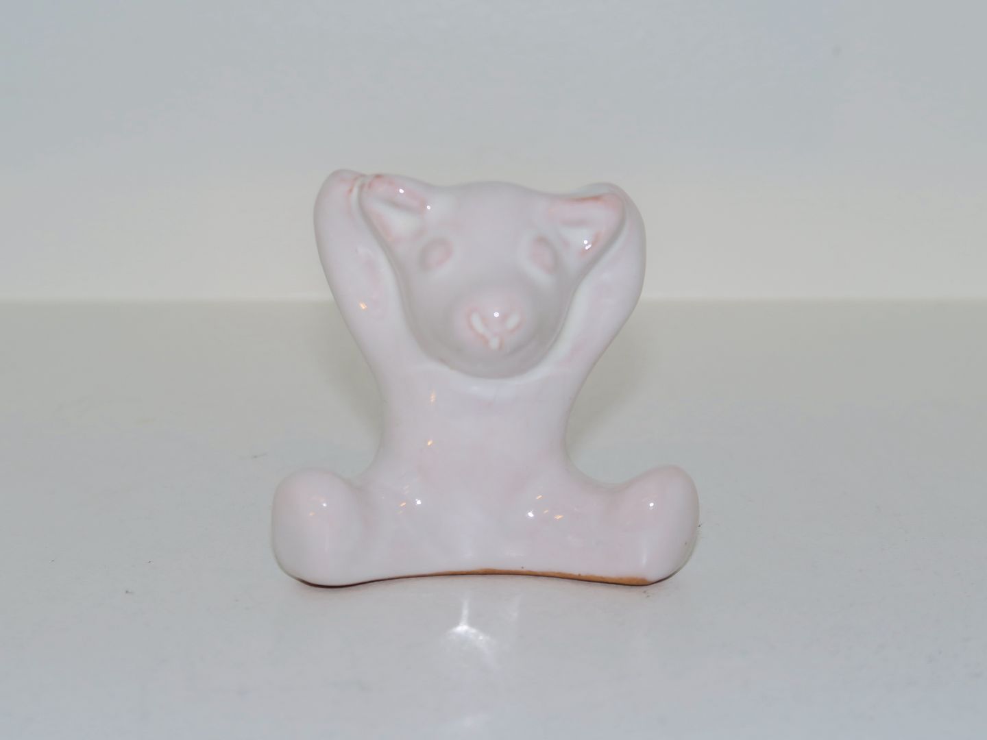 Beskrivelse: Hjorth keramik miniature figur, hvid bjørneunge med armene op.