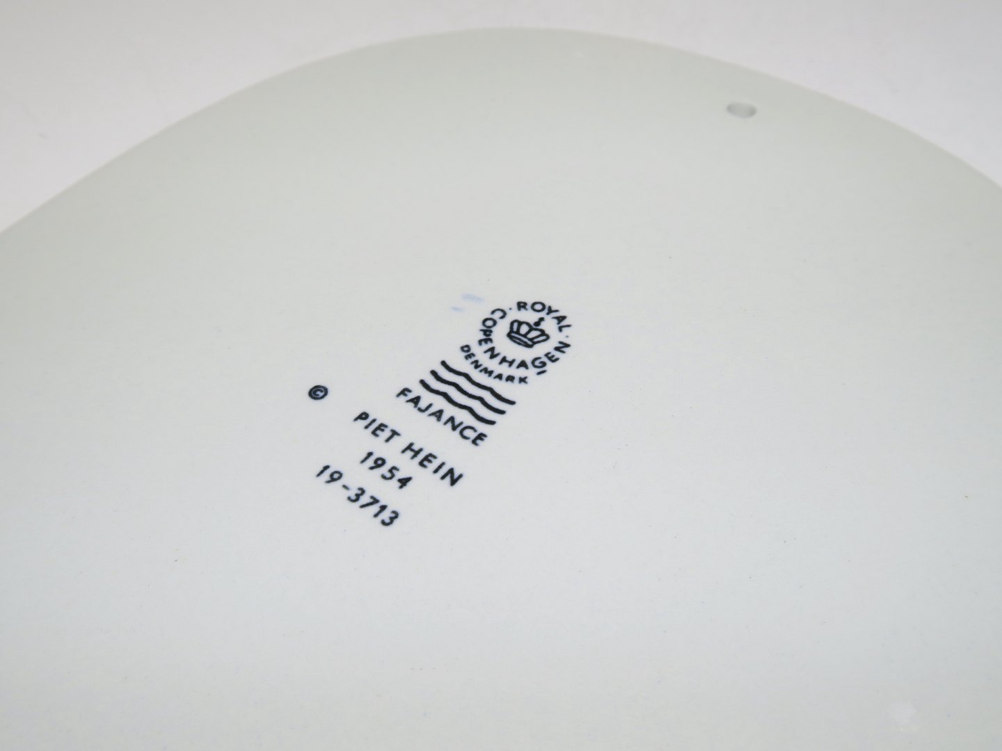 Beskrivelse: Royal Copenhagen Piet Hein platte med gruk på engelsk.