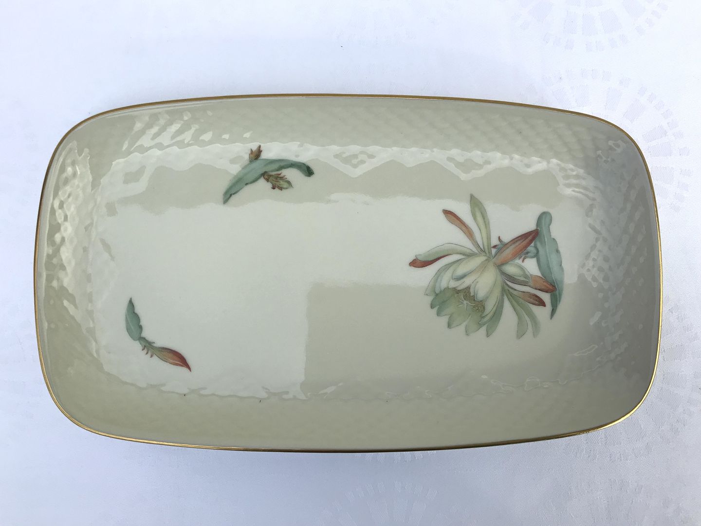 Beskrivelse: Bing &Grøndahl, Kaktus, Bakkefad #96, 27cm bred, 15cm dyb, 1.sortering *Pæn stand*