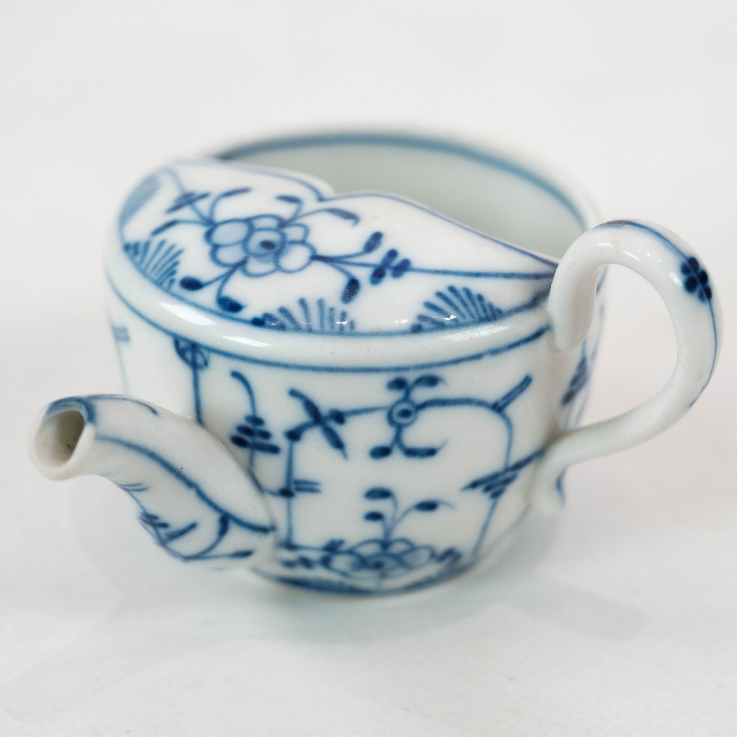 Tea cup of German porcelain decorated with blue pattern.