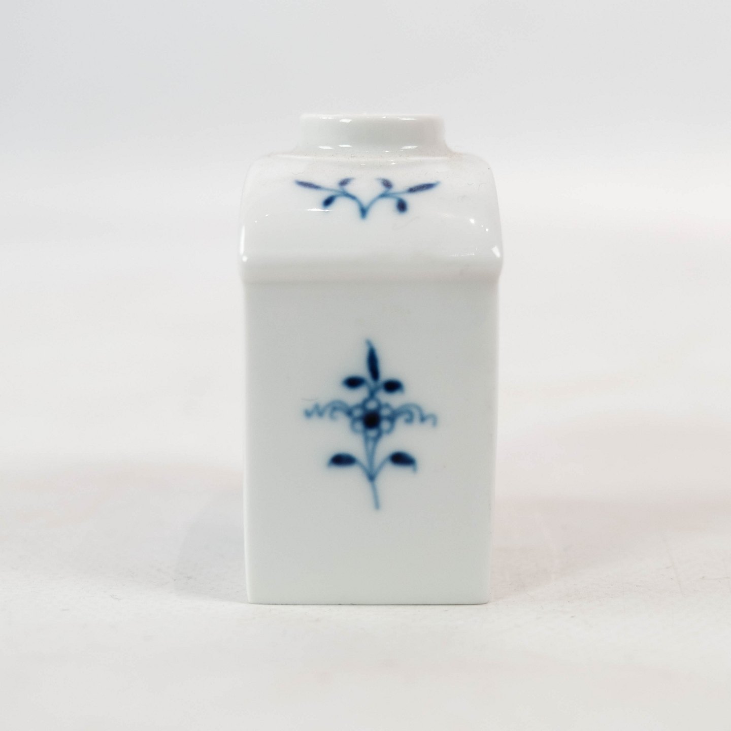 Tea jug of German Meisner porcelain decorated with blue pattern.