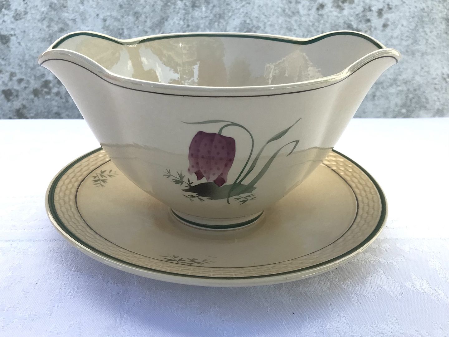 Beskrivelse: Royal Copenhagen, Aluminia, Victoria II stelform, Vibeæg, Sovseskål, 20cm i diameter, 11cm høj, Design Nils Thorsson *Pæn brugt stand med krakeleringer*