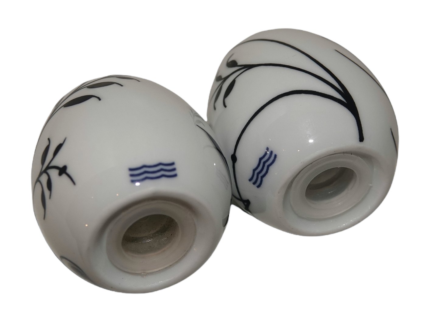 Beskrivelse: Royal Copenhagen Musselmalet Mega Sort, lille salt- og peberbøsse.