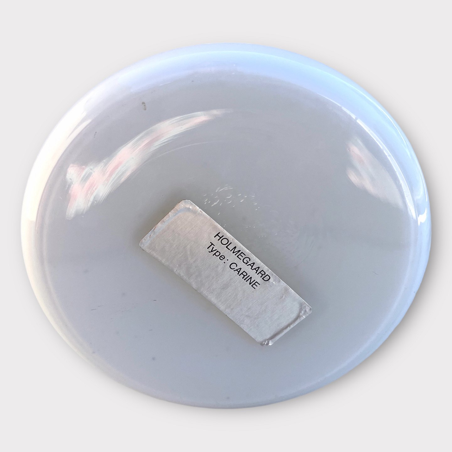 Beskrivelse: Holmegaard, Carine, Reol lampe, 18cm høj (Incl. fatning), 11cm i diameter, Opal glas, Design Sidse Werner *Pæn stand*