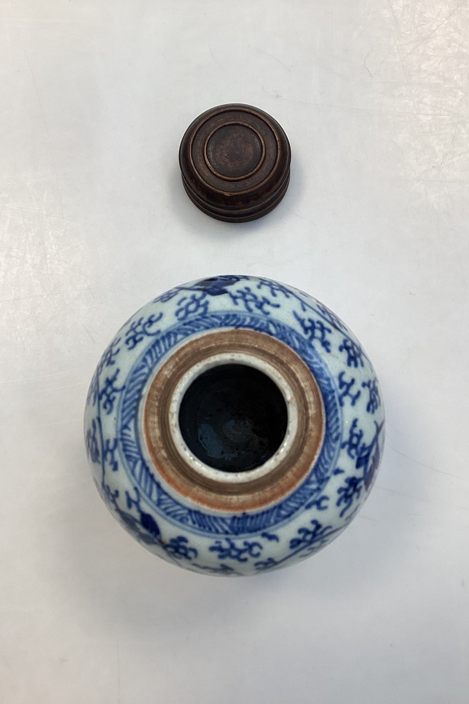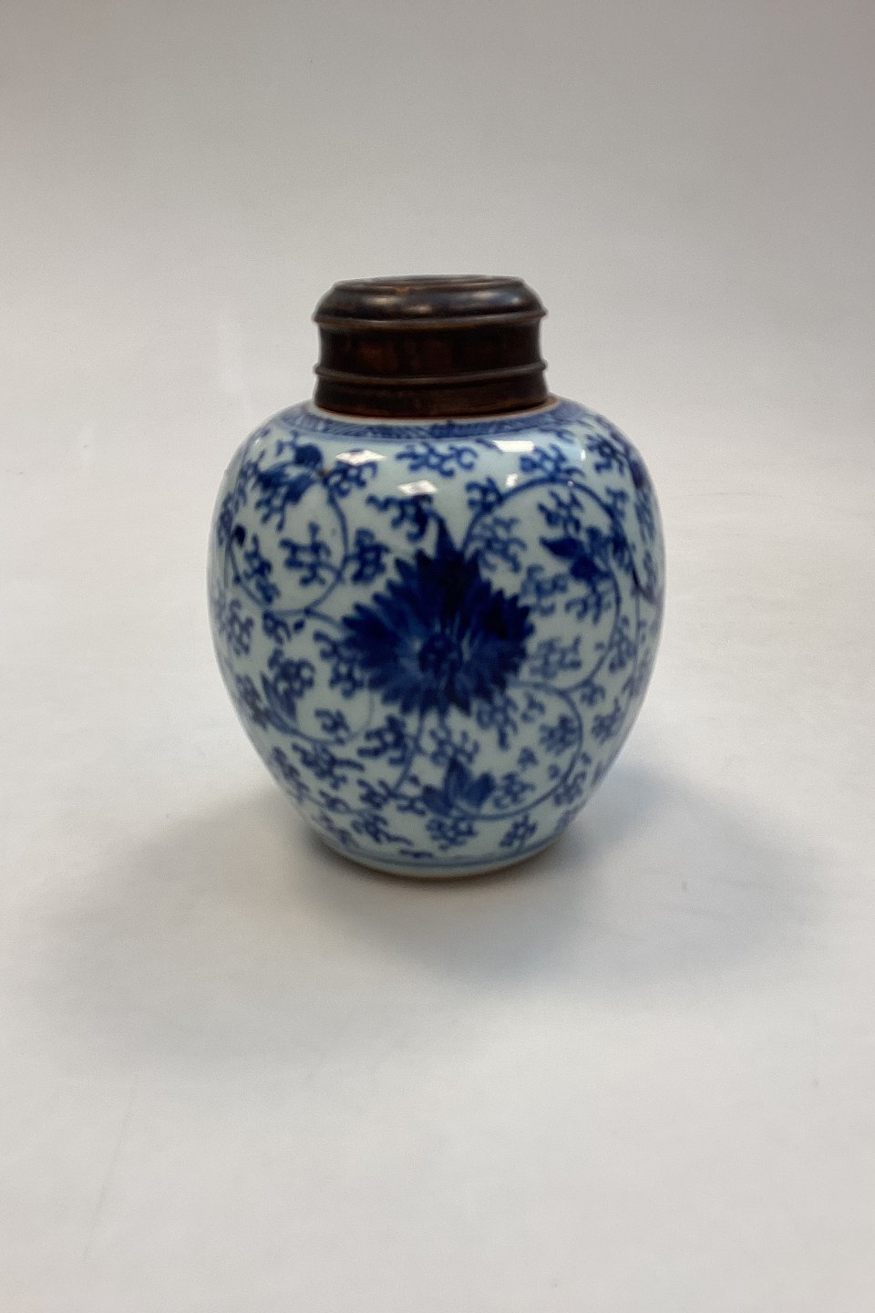 Beskrivelse: Orientalsk Kinesisk Vase / Ingefærkrukke med motiv i blå og hvid - Jiaqing perioden 1795-1820?
