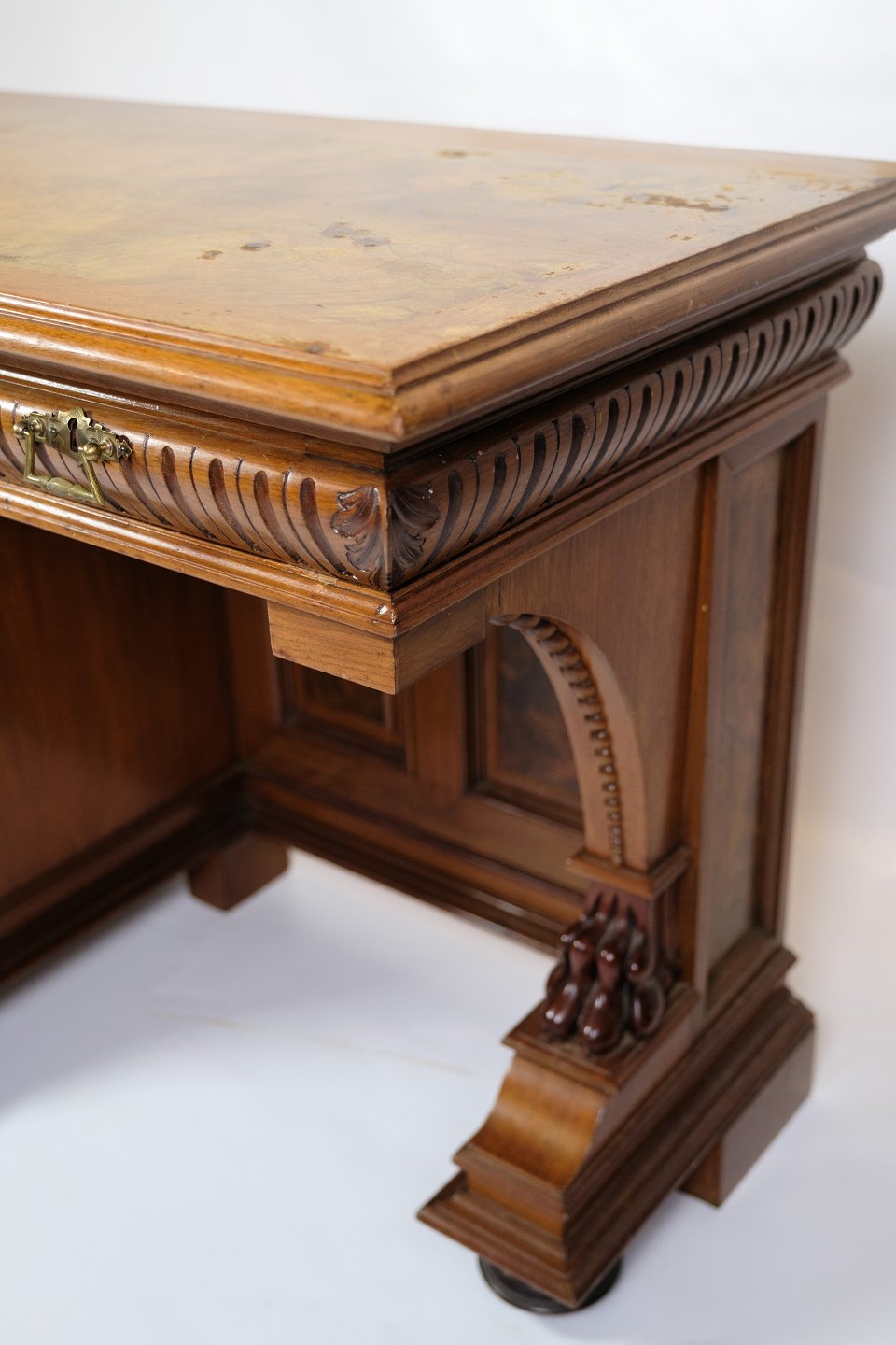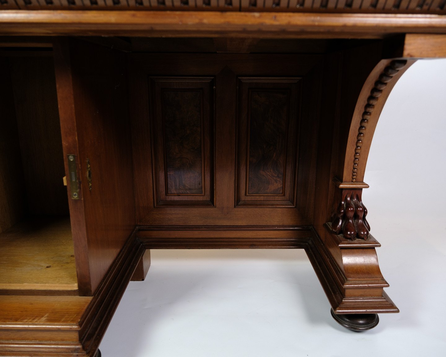Description: Antique desk with a small side cabinet for storage, made in walnut from the 1860s.
