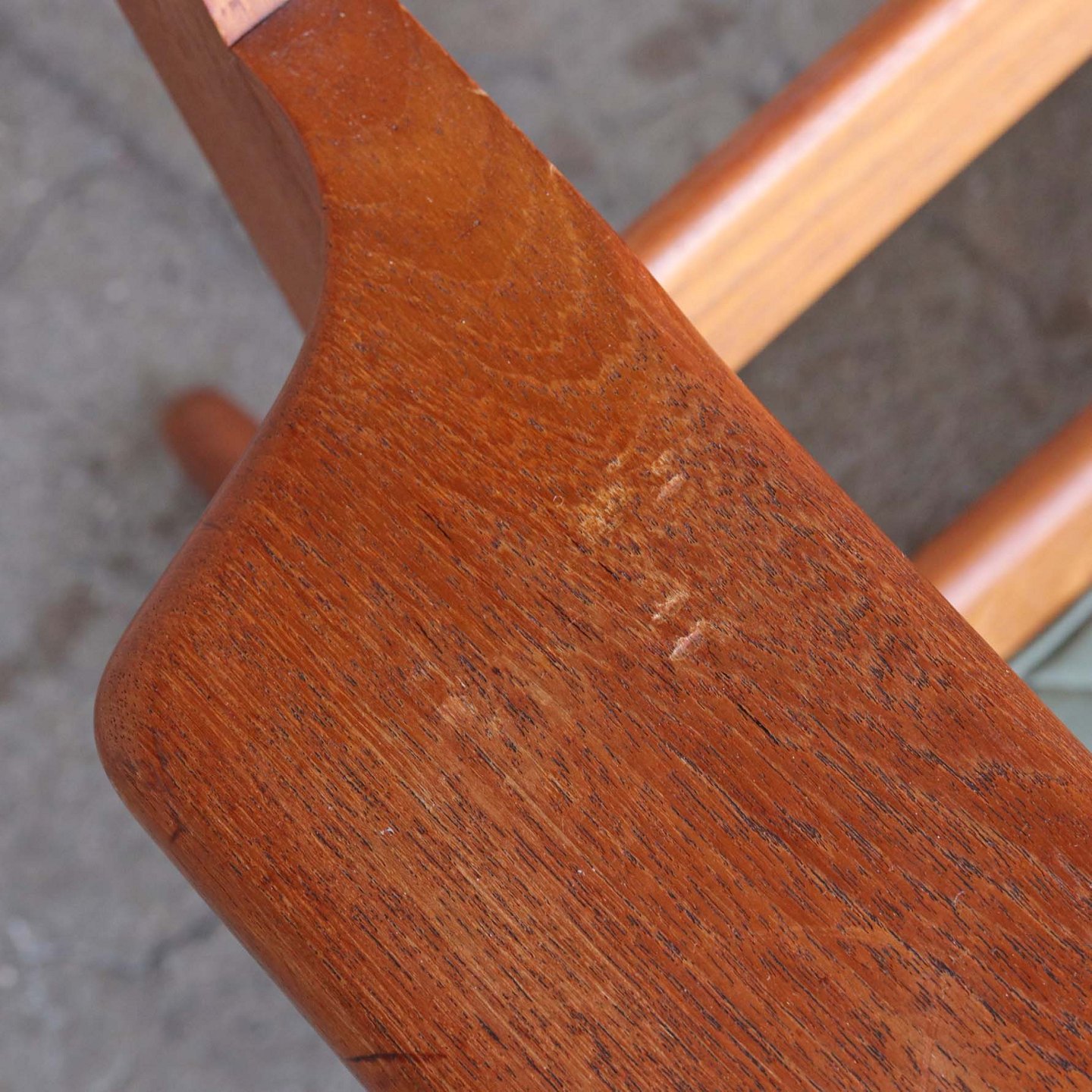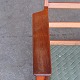 Beskrivelse: Lænestol med stel i lakeret teaktræ og hynder med springfjeder. Hynderne er betrukket med meleret råhvidt uldstof. Model GE 290