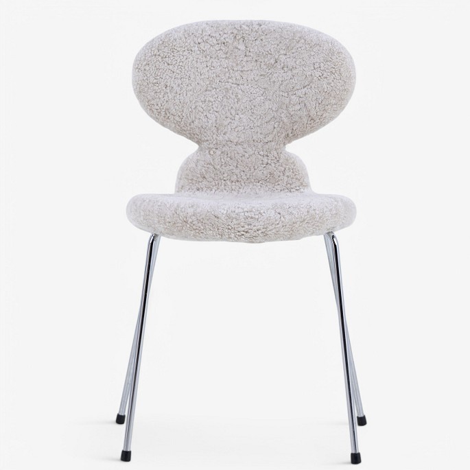 AJ 3100 - Fully upholstered 'The Ant' chair in lambskin (color: Moonlight). Stamped from manufacturer.