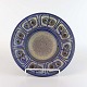 Beskrivelse: Dyb skål eller bordfad i glaseret stentøj med abstrakt motiv i blå nuancer. Nr. 611