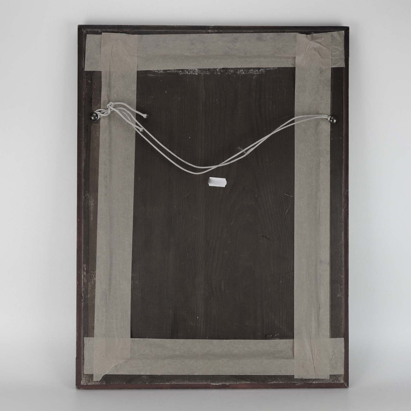 Fremstår med vandmærker på papiret, urensheder i glasset og afslag på rammen.