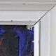 Beskrivelse: Maleri på lærred monteret i hvidmalet træramme med motiv i struktureret maling af et hus ved skåning omgivet af træer.
