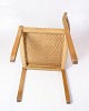 Beskrivelse: Sæt af fem spisebordsstole, model 401, designet af Jørgen Henrik Møller for JL Møllers Møbelfabrik i 1960’erne. Udført i massivt egetræ med håndflettet sæde i planflet. Klassisk dansk møbeldesign med fokus på kvalitet og håndværk. Stolene står i meget pæn stand.