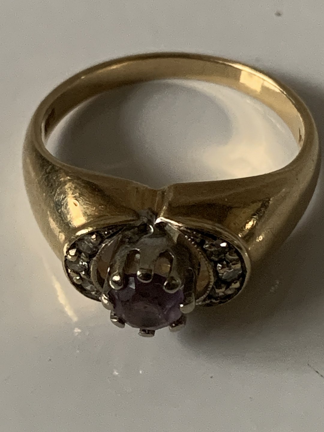 Description: Gold ring with Amethyst and Diamonds 14 carat