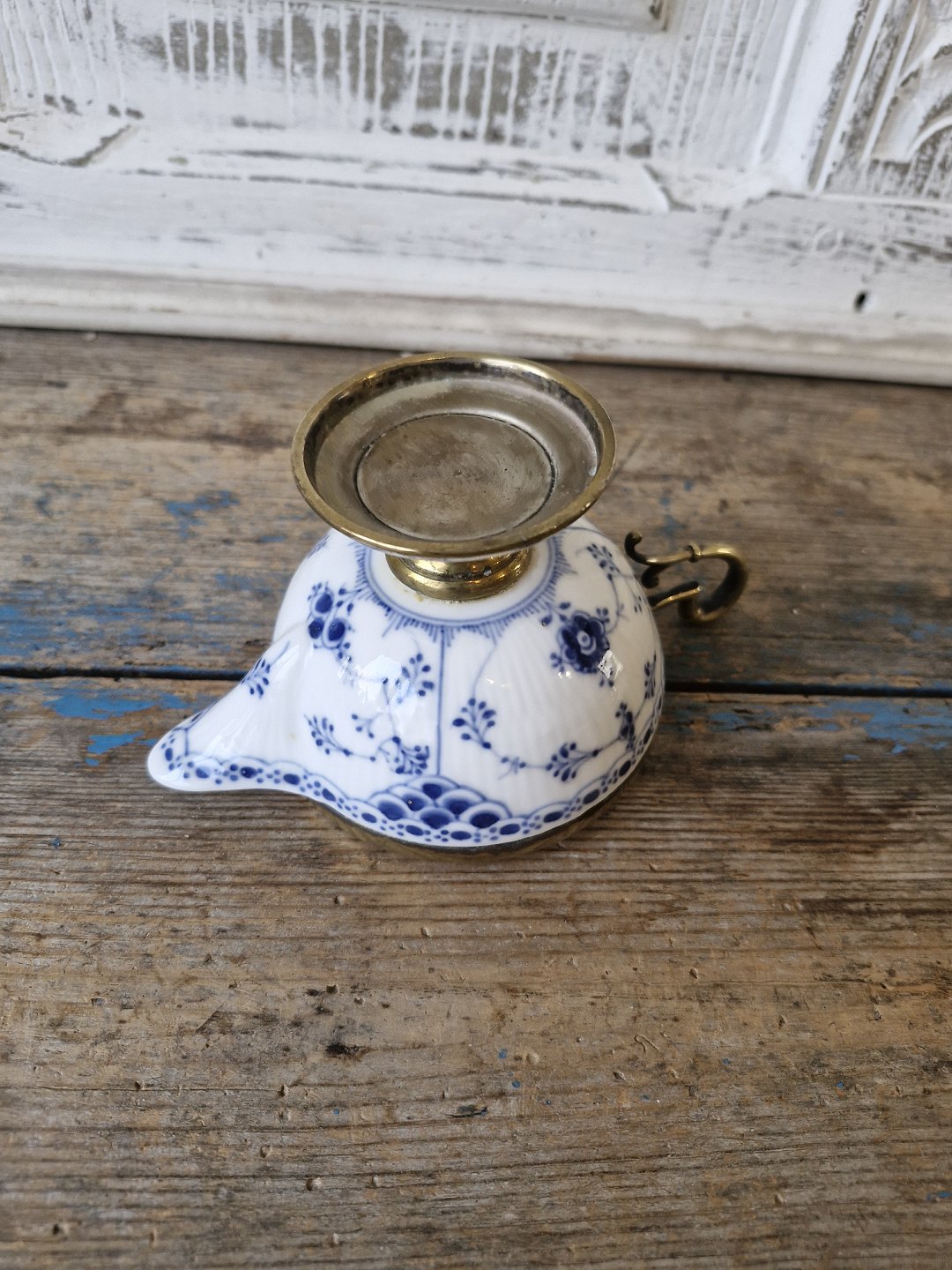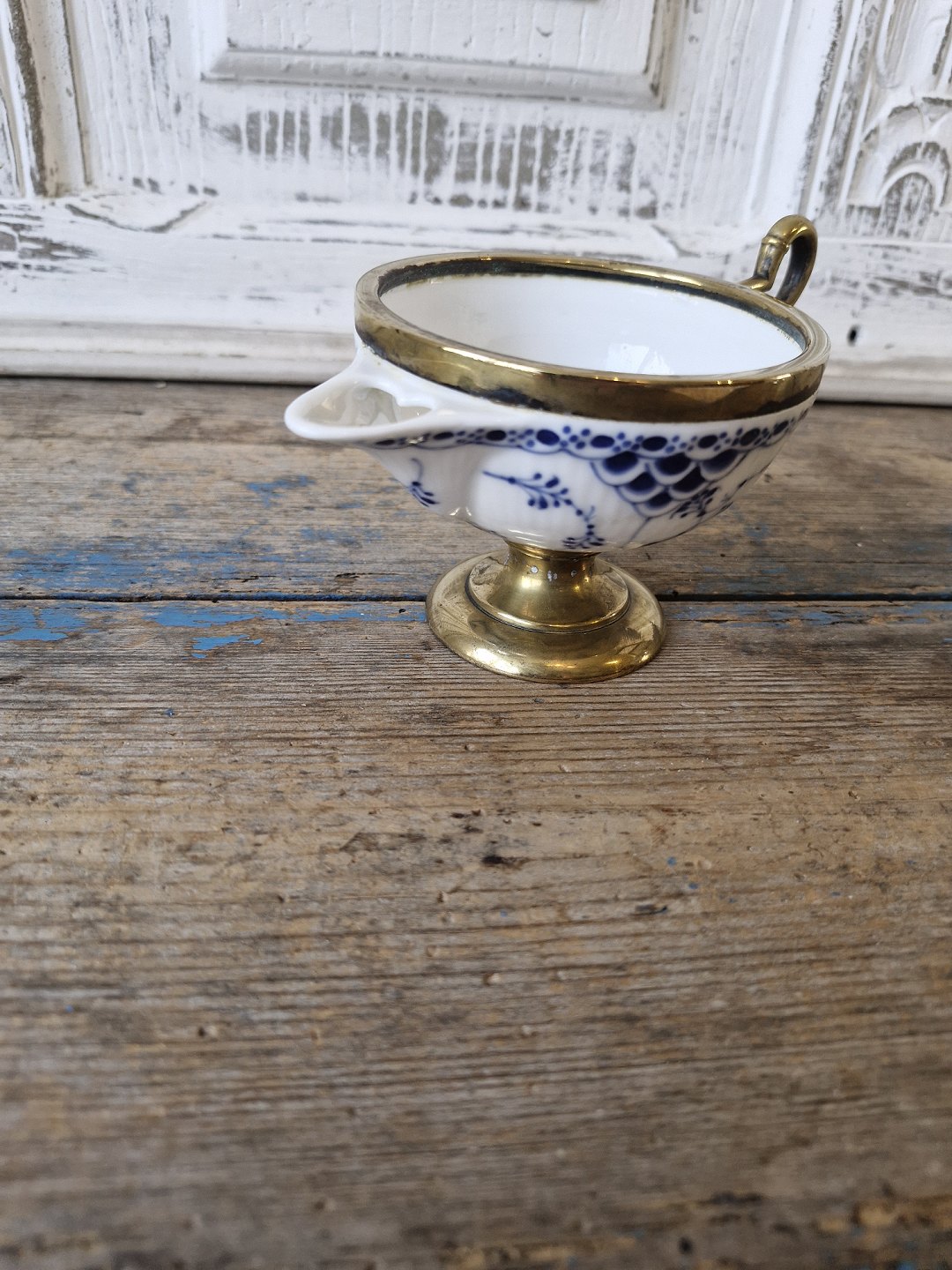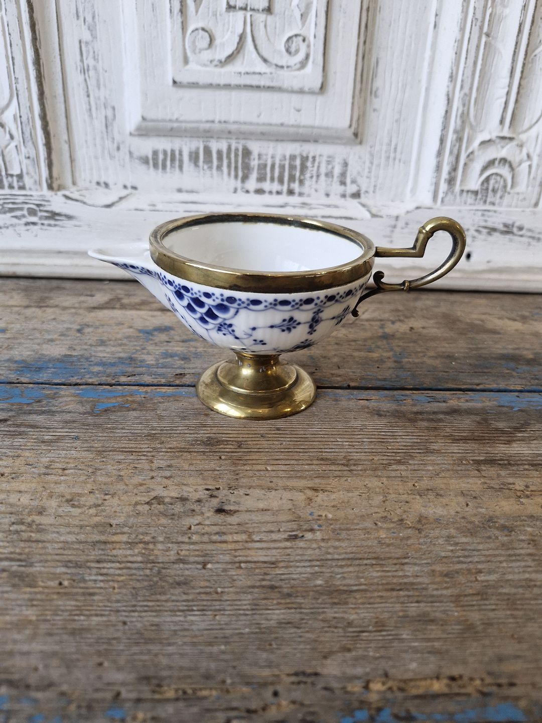 Royal Copenhagen Musselmalet halvblonde flødekande med messing montering