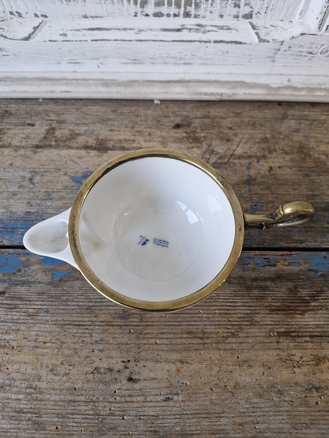 Beskrivelse: Royal Copenhagen Musselmalet halvblonde flødekande med messing montering