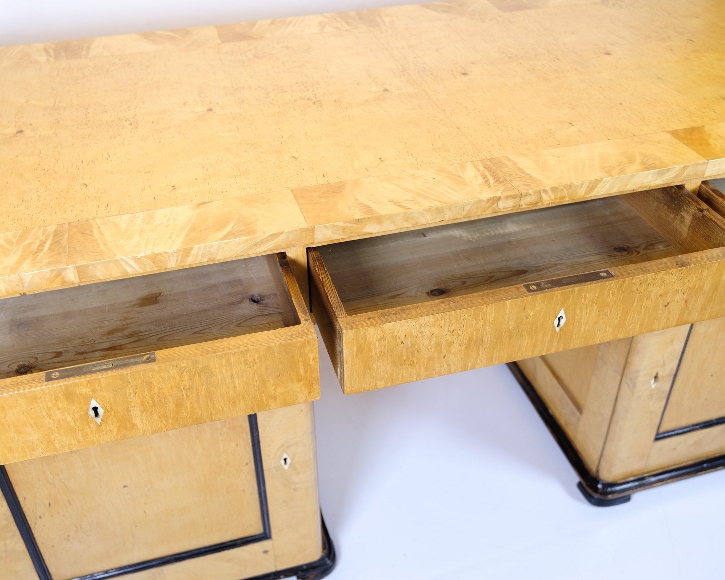 Antikt Skrivebord – Birketræ & Intarsia – 1840’erne
