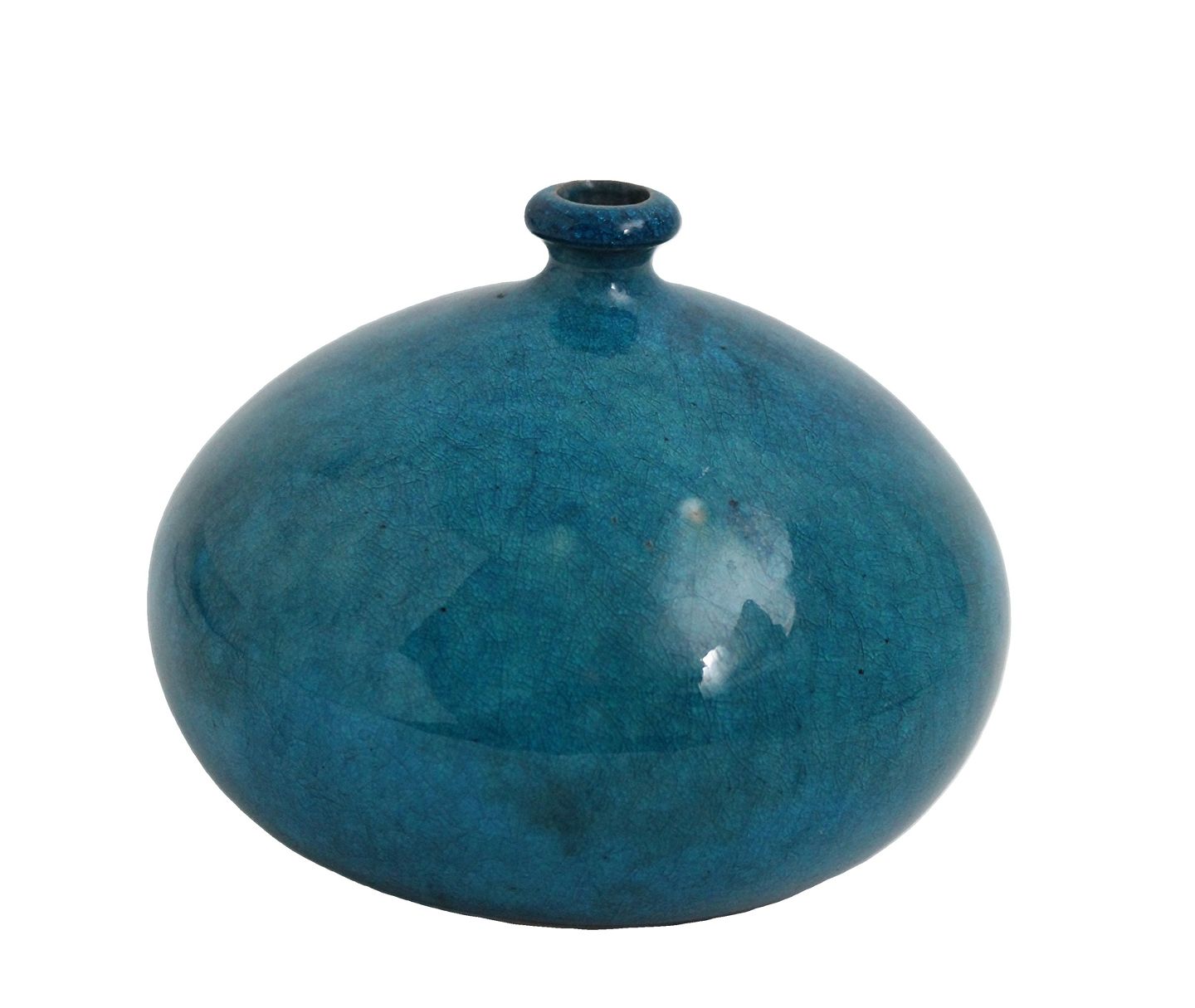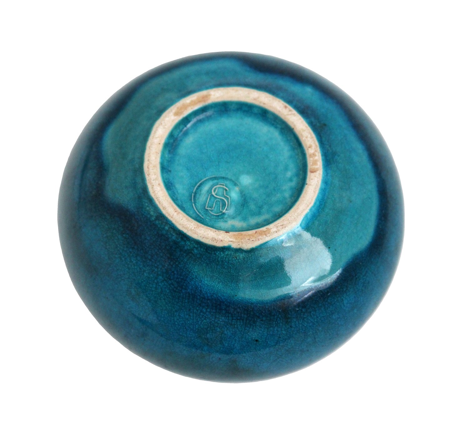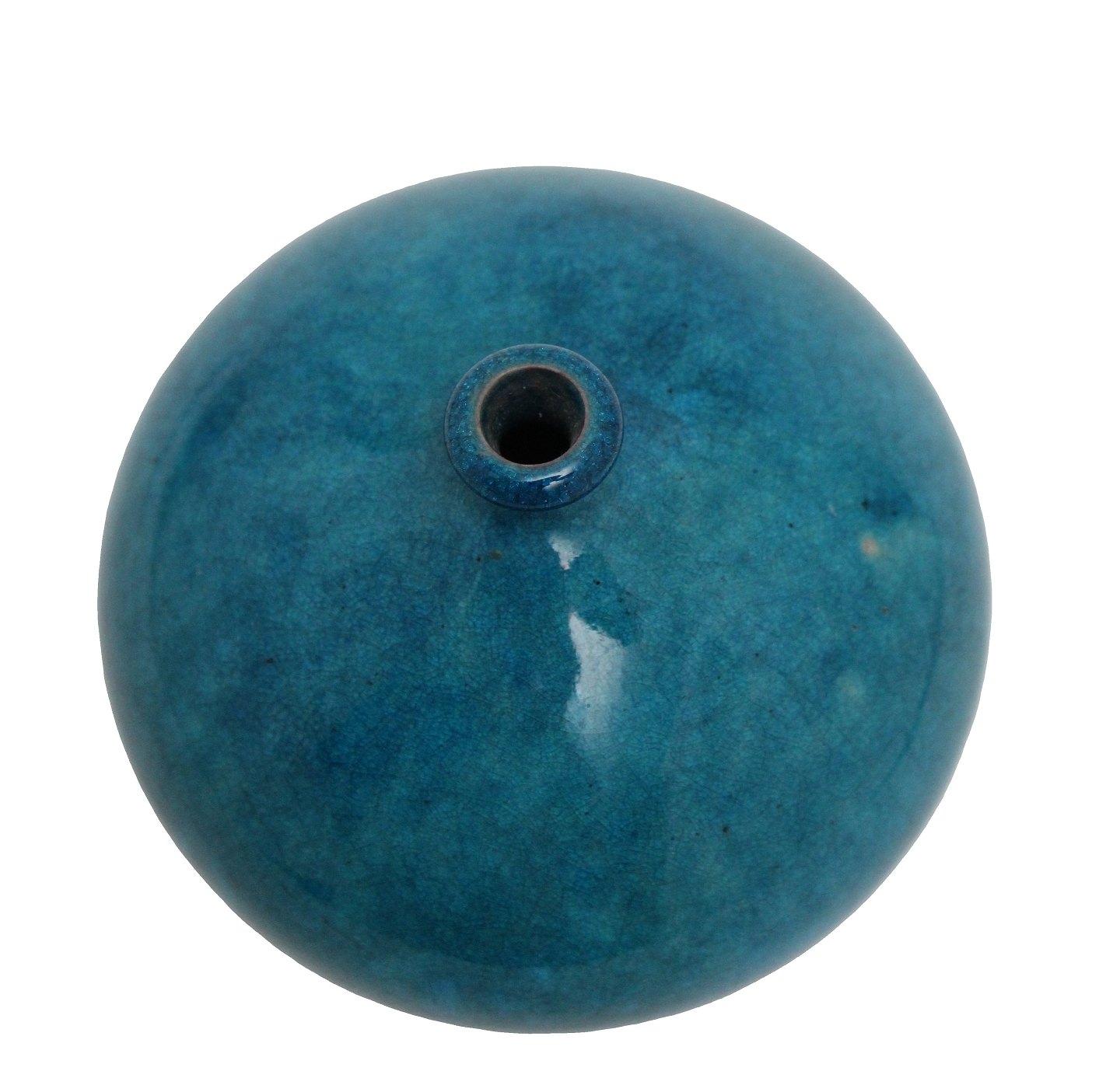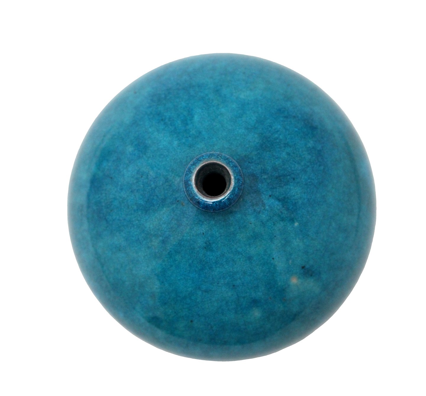 Beskrivelse: Knabstrup, Lille kuglevase i smuk turkisblå glasur. Yderst sjælden udgave med S stemplet fra 1964-1965. Vasen har været i Knabstrup medarbejdernes hjem, siden produktionen. En rigtig samler genstand. Flot stand. Pris: SOLGT