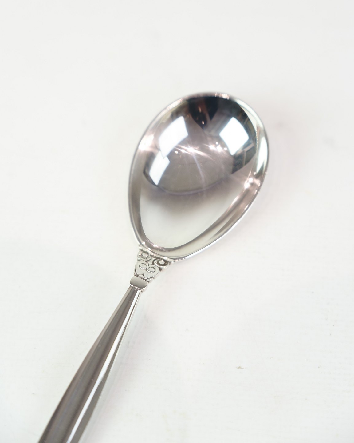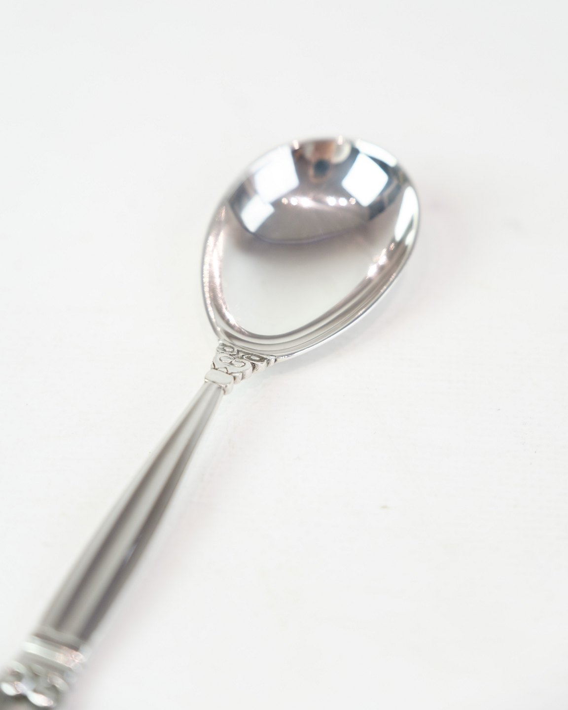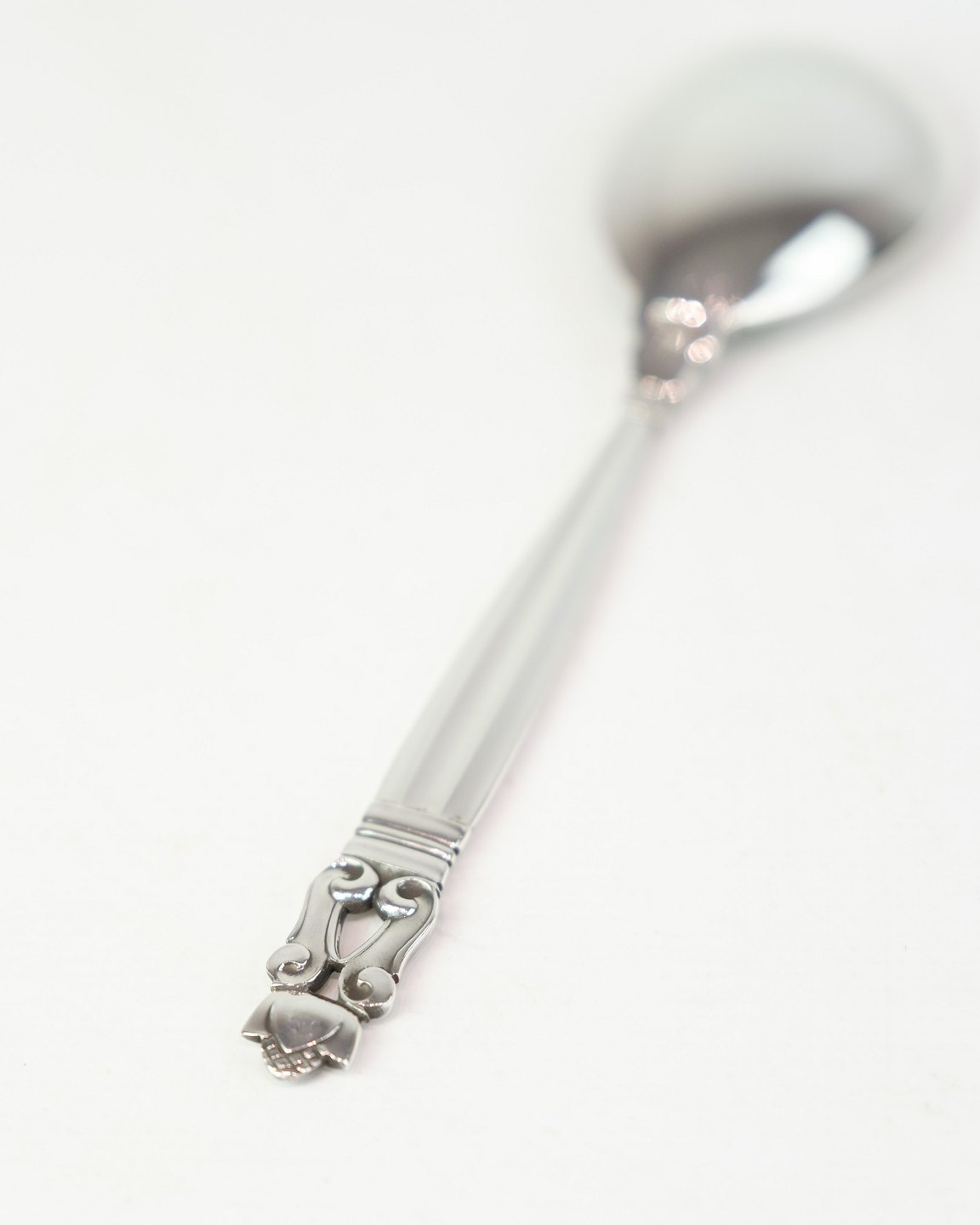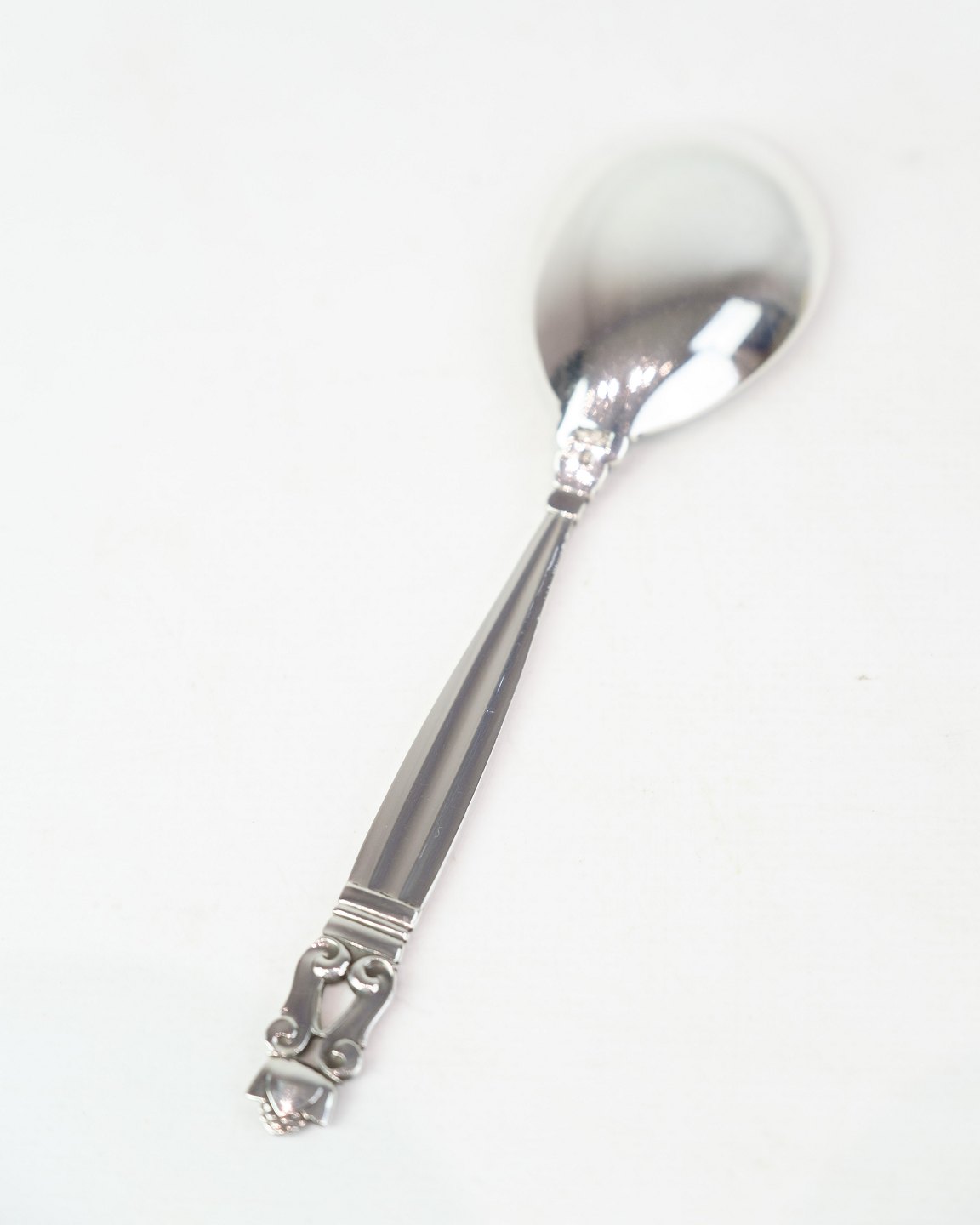 Description: Georg Jensen serving spoon in Konge pattern. Sterling silver, model No. 161. Design by Johan Rohde 1915. Length 15 cm.