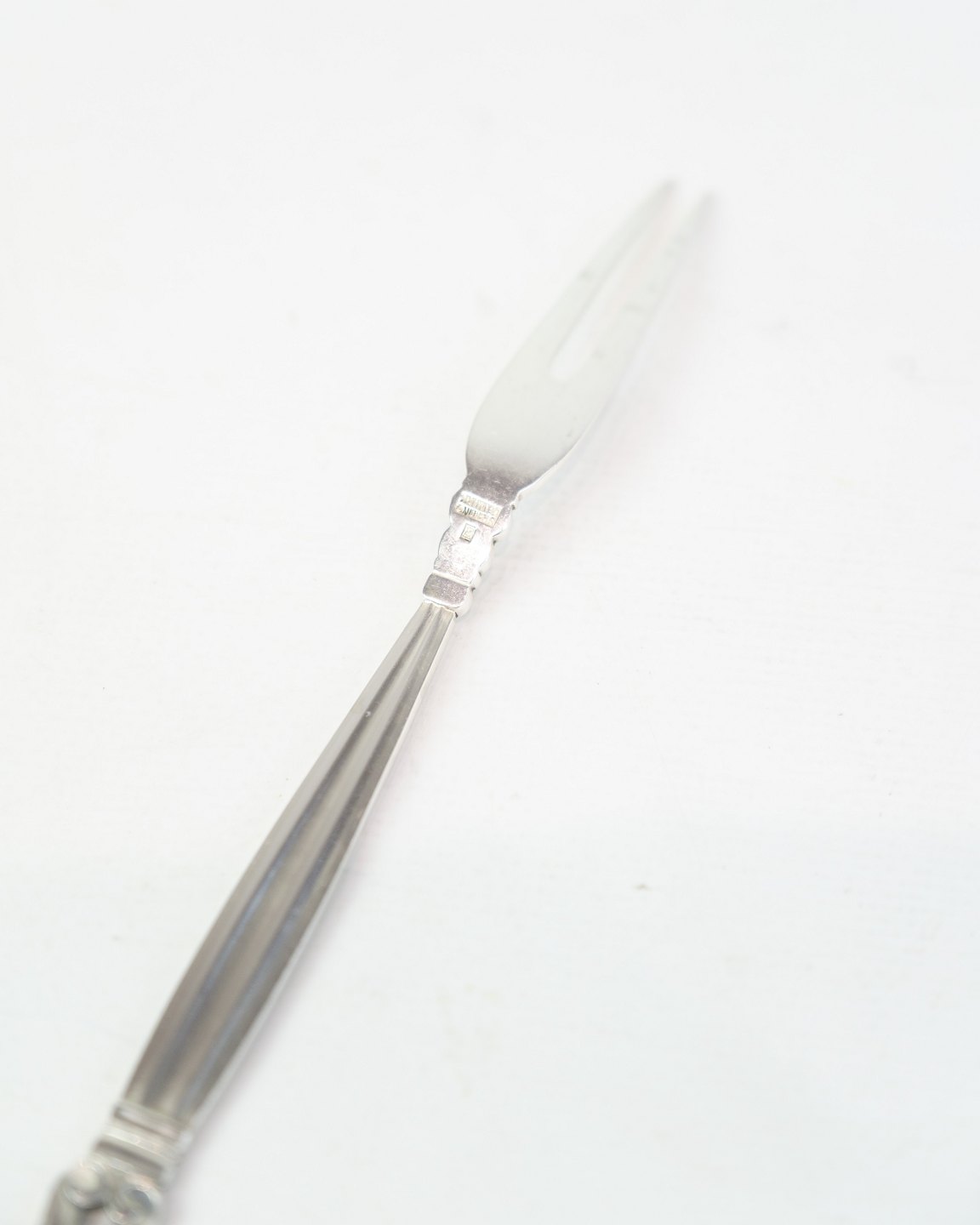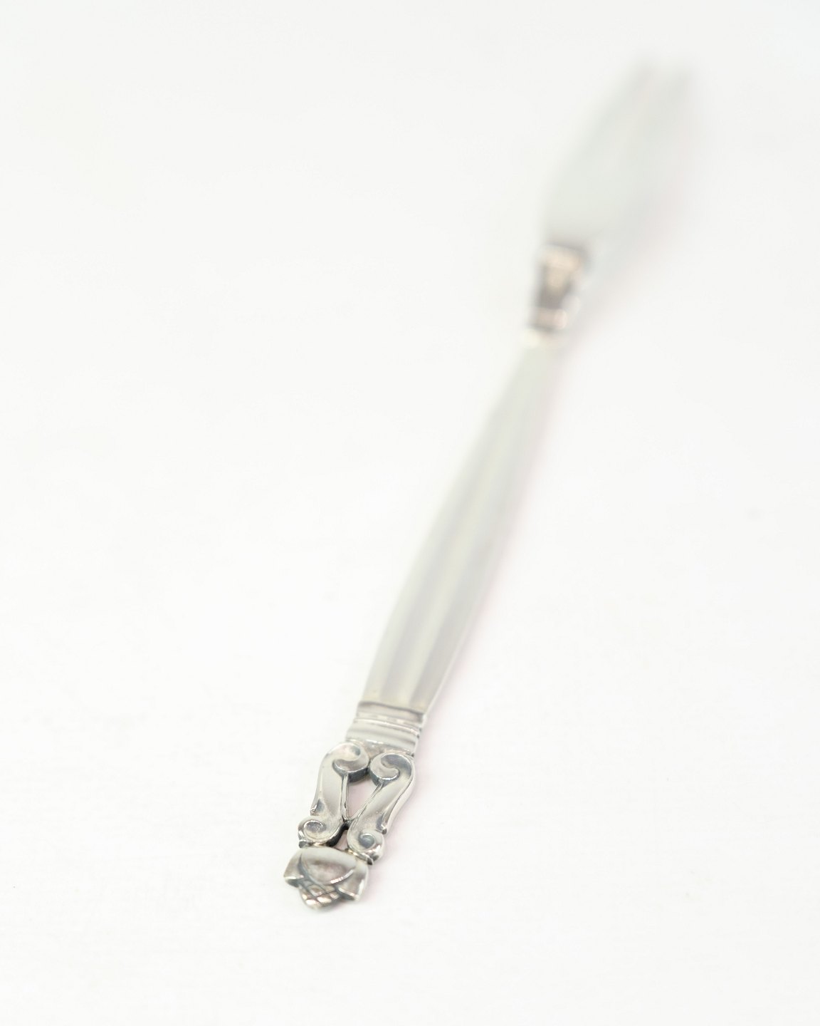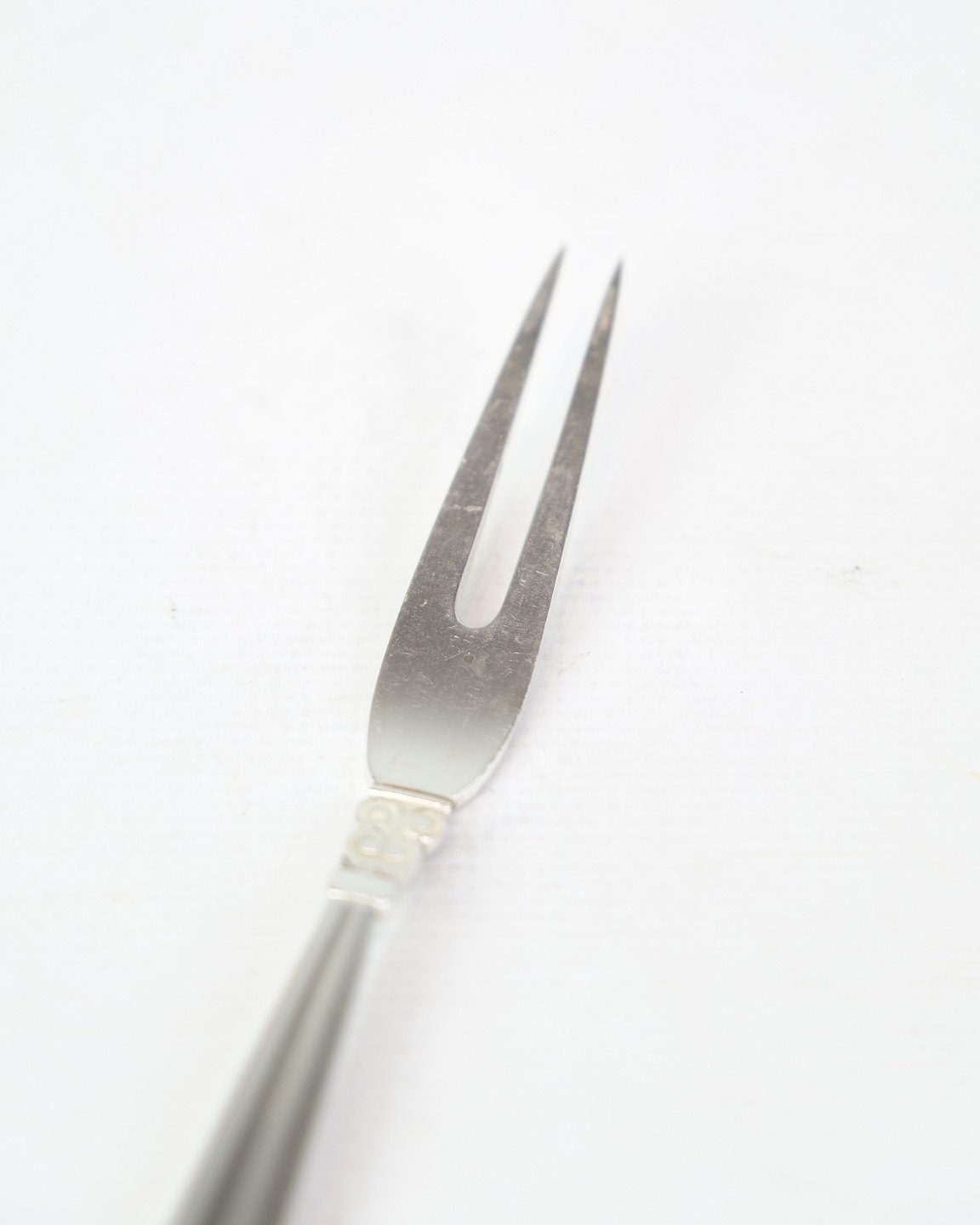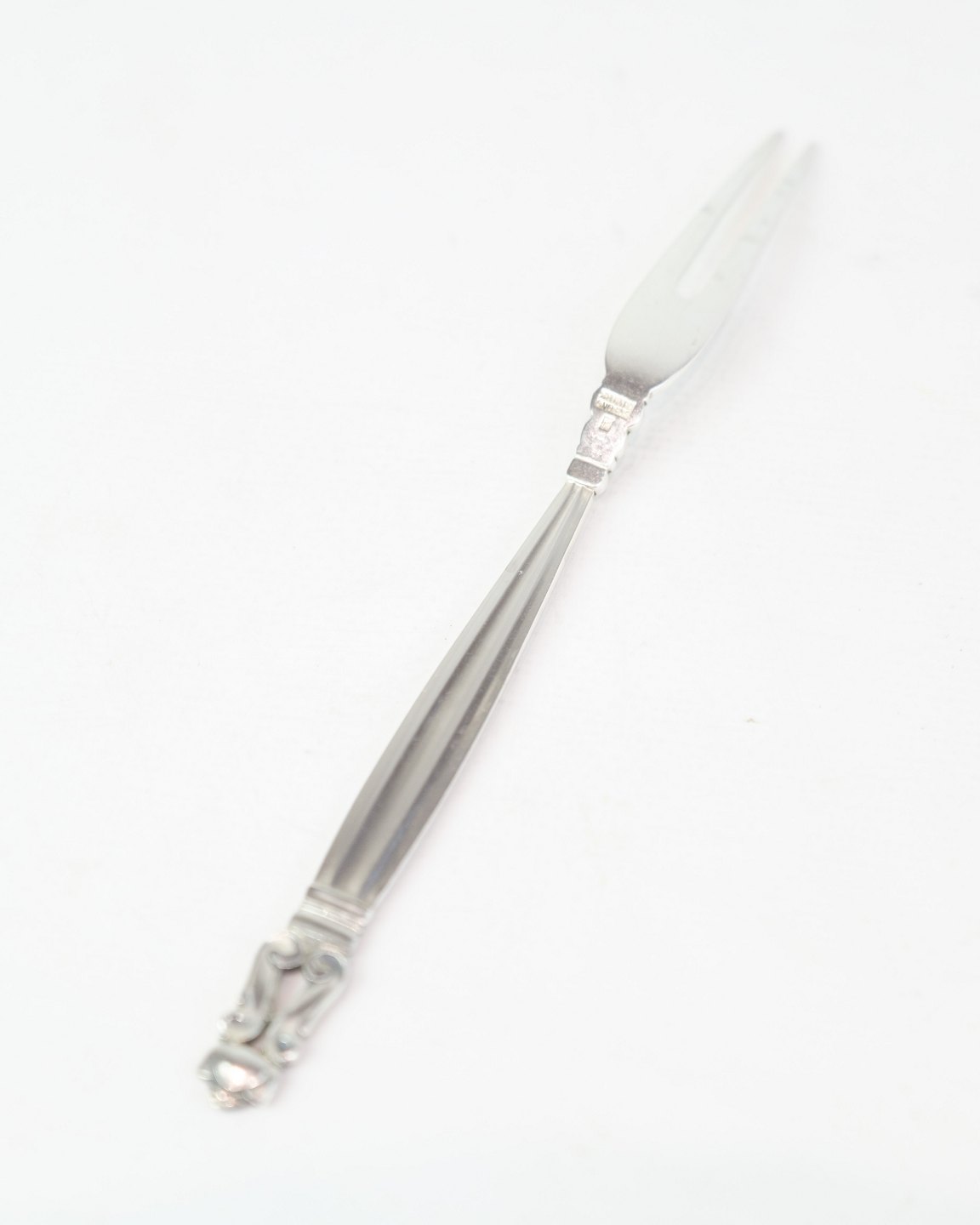 Description: Georg Jensen cold cuts/roasting fork in King pattern. Sterling silver, design by Johan Rohde 1915. Length 16.5 cm.