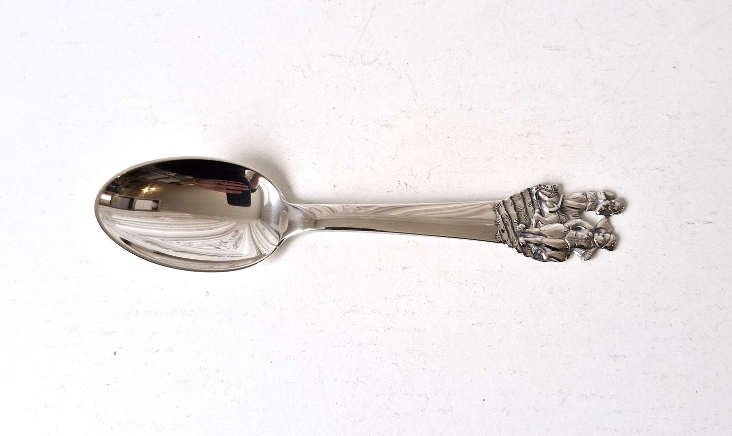 Beskrivelse: H.C.Andersen barneske i sølv - "Lille Claus og store Claus"