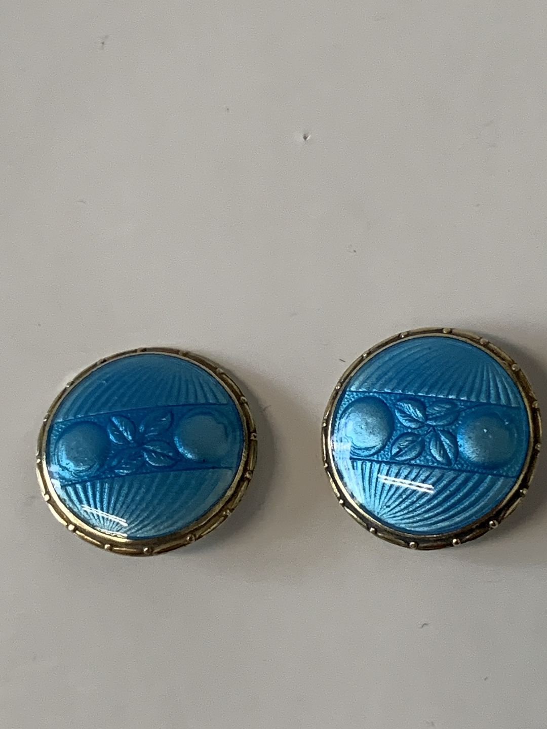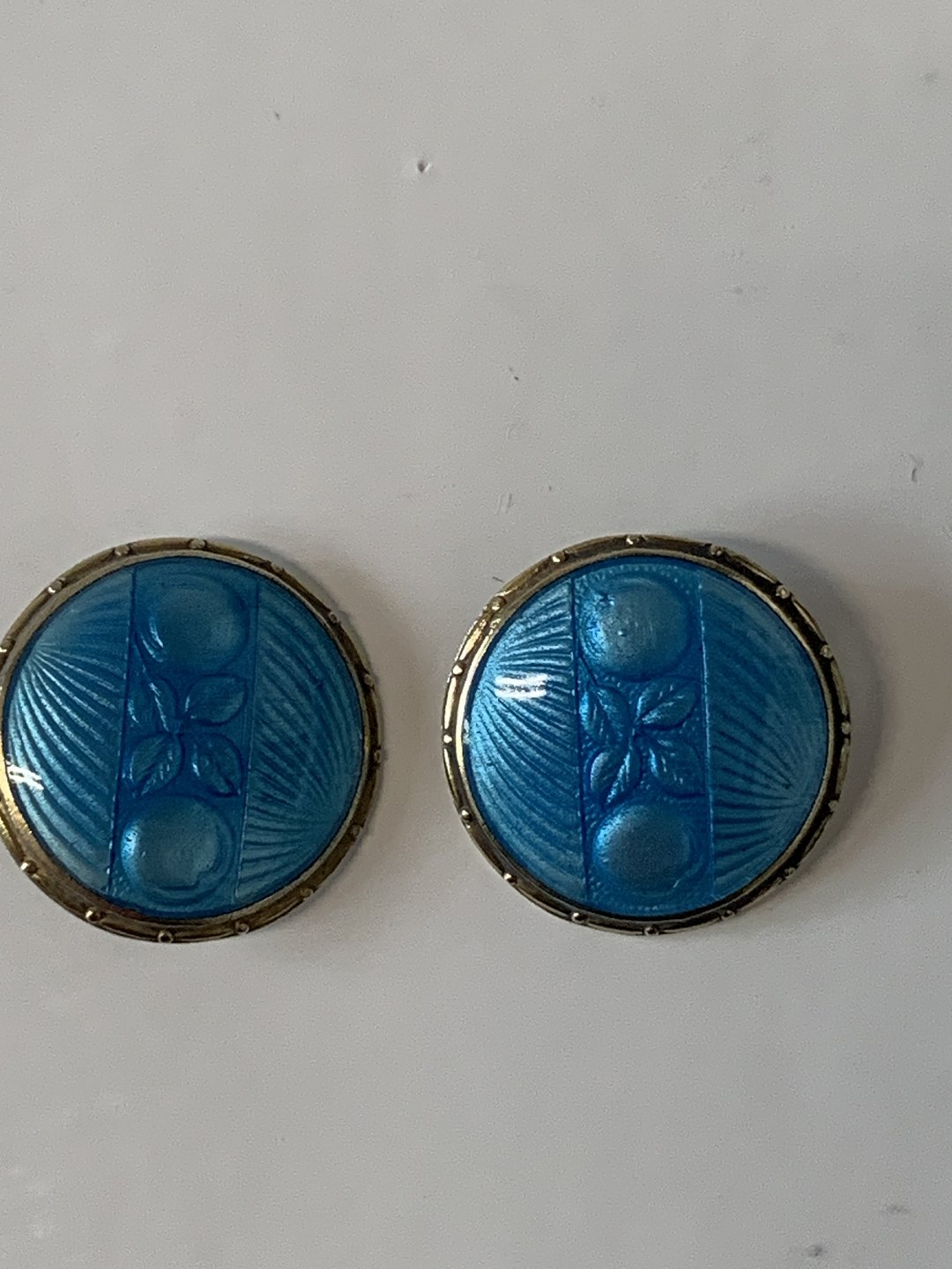 Description: Buttons in sterling silver with blue enamel 2 pieces.