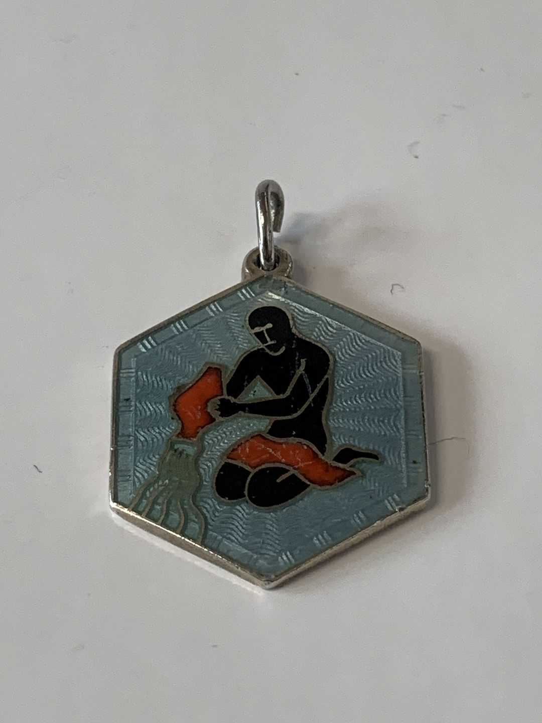 Aquarius zodiac sign Pendant with enamel in sterling silver.