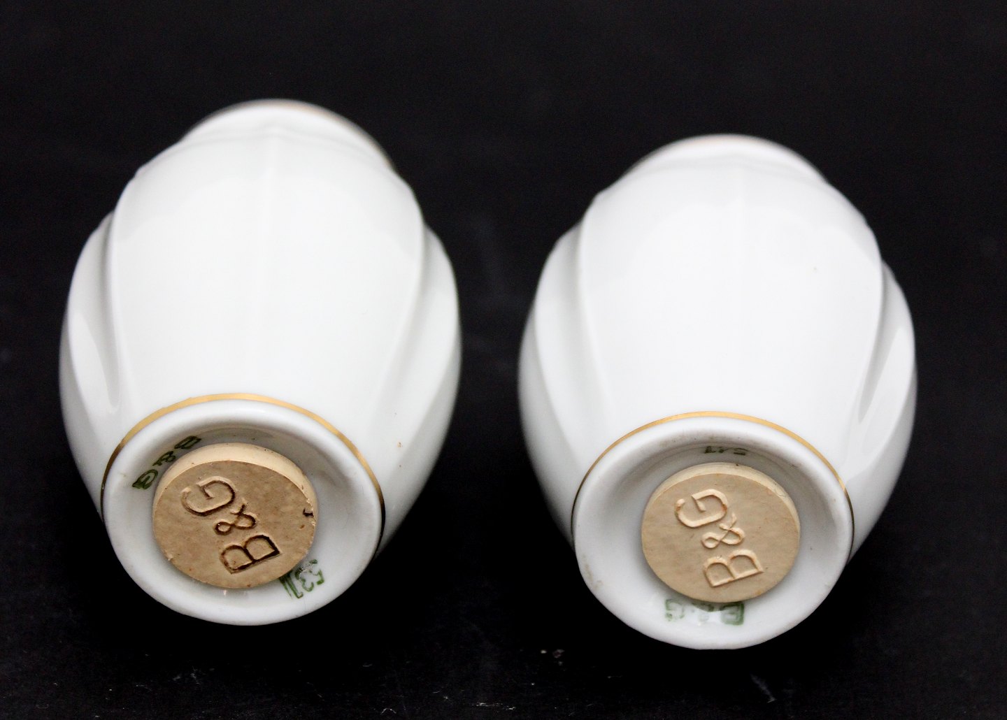 Beskrivelse: Bing & Grøndahl, Offenbach, Salt og Peber sæt. Hvidt kantet porcelæn med guld. Højde 7,5 cm. Salt og peber med original B&G propper. Pris: 375 kr. for sættet.