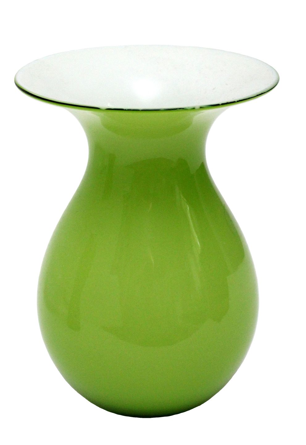 Beskrivelse: Holmegaard, Shape, Grøn vase opalhvid indvendig, mundblæst glas. Designet af Peter Svarrer 2005. Højde 17 cm. Der er flere størrelser i Shape, dette er den mindste. I. sortering. Med en produktionsfejl i kanten af kraven mellem hvid og grøn, se foto. Pris: 375 kr.