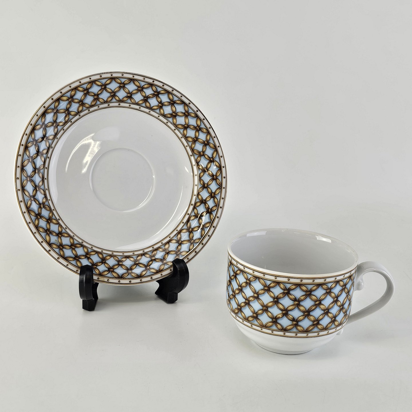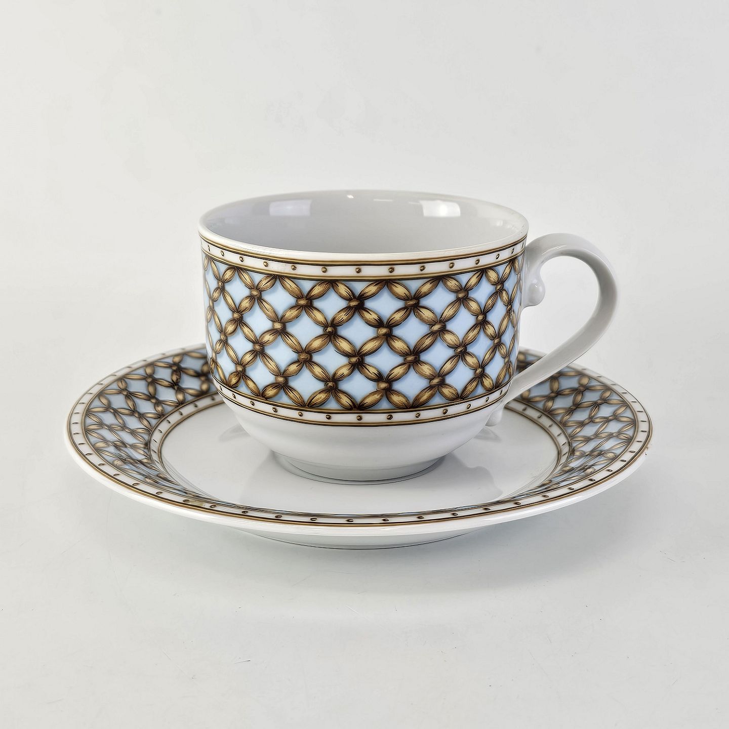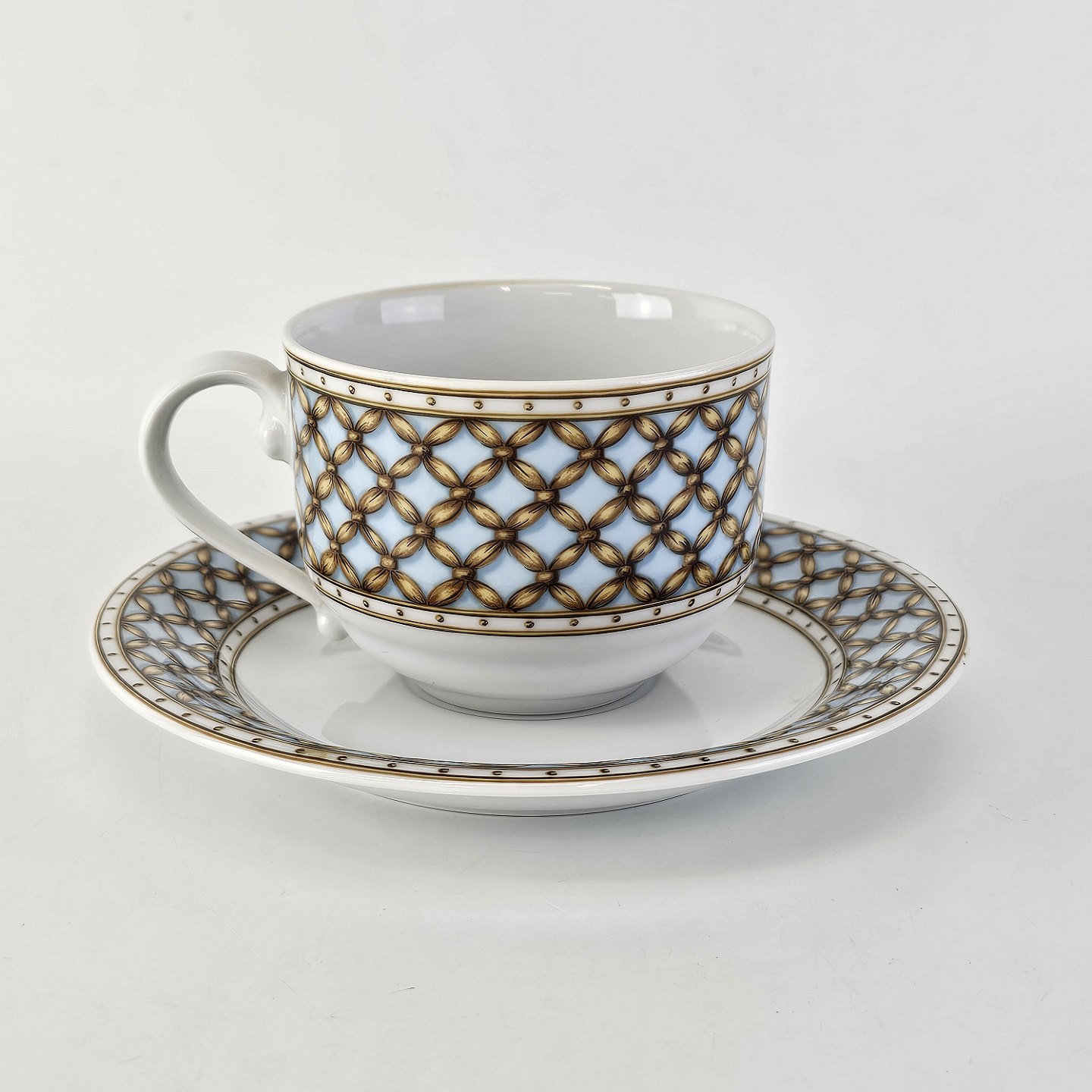 Liselund er hvidt porcelæn dekoreret i lyseblå eller mørkeblå nuancer med fletmønster
