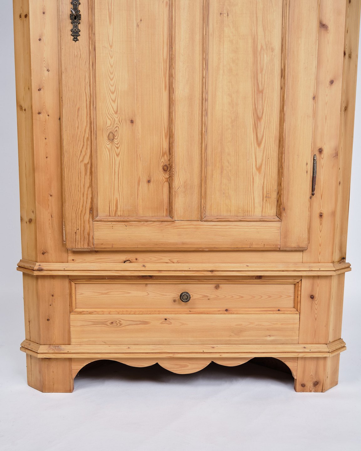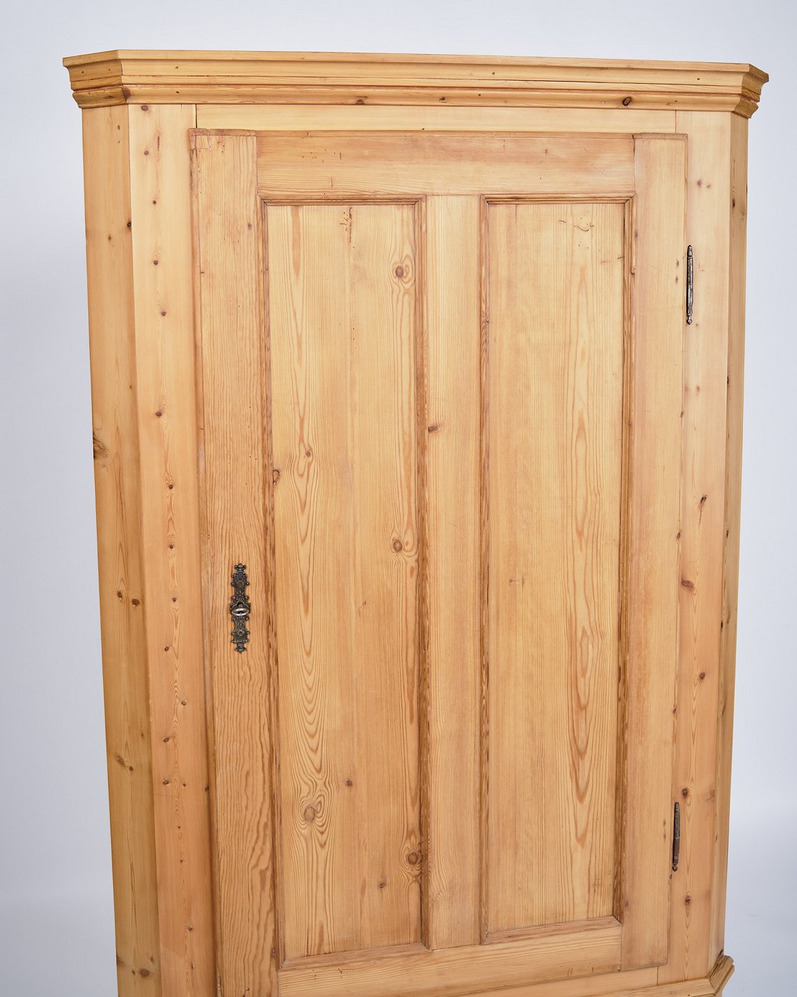 Antikt Hjørneskab - Massivt Fyrtræ - Messing Beslag - 1880erne