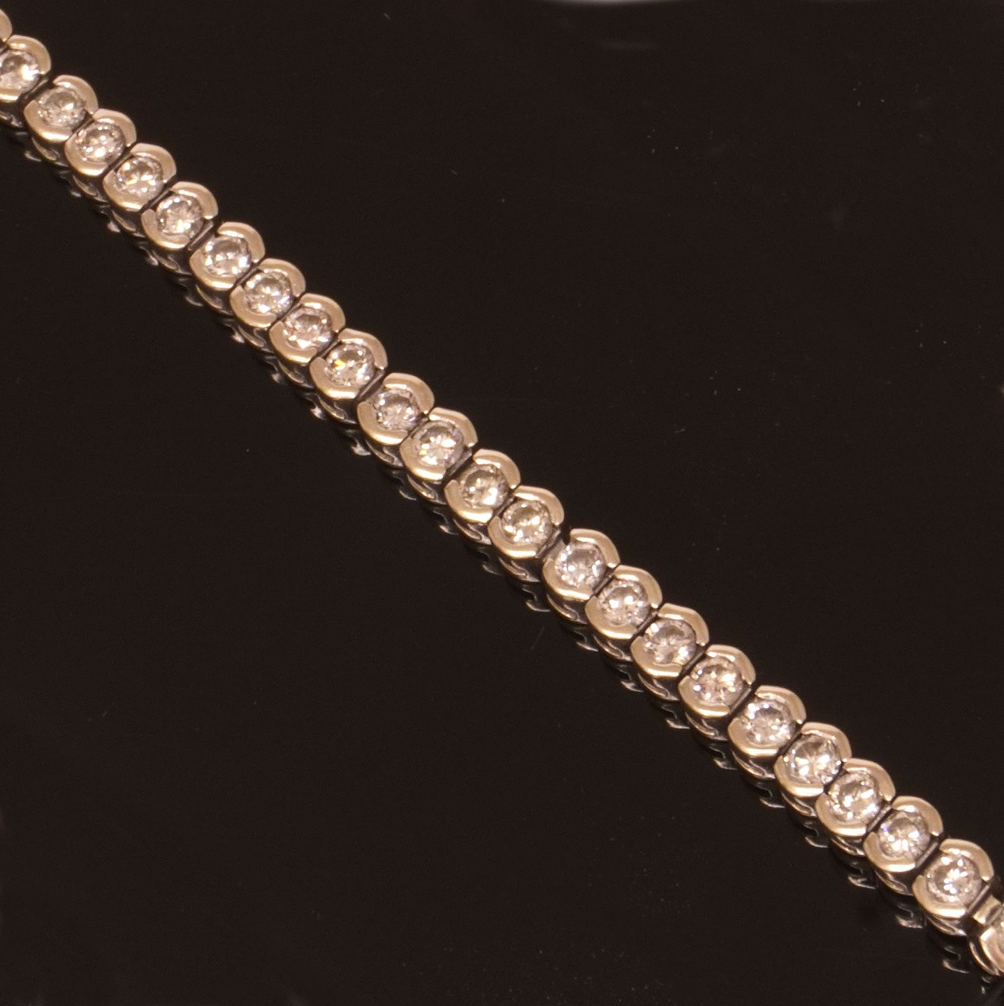 14kt hvidguld tennisarmbånd prydet med 62 diamanter på hver ca. 0,05ct i alt ca. 3ct. L: 19,5cm. B: 4mm. V: 15gr