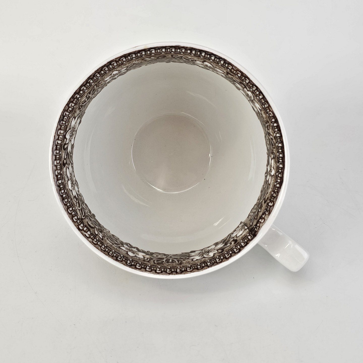 Kop i lys fajance med brunfarvet motiv