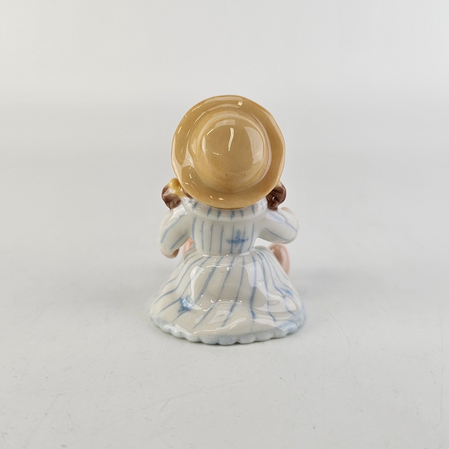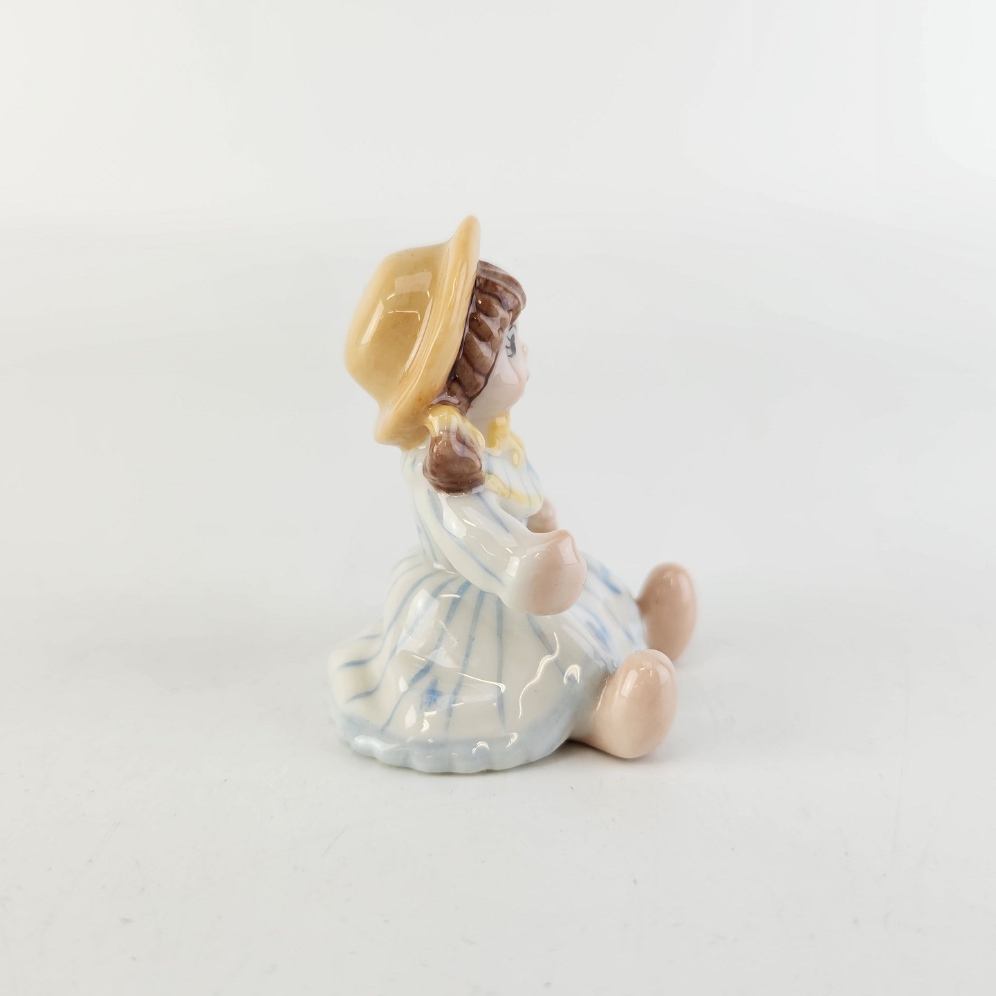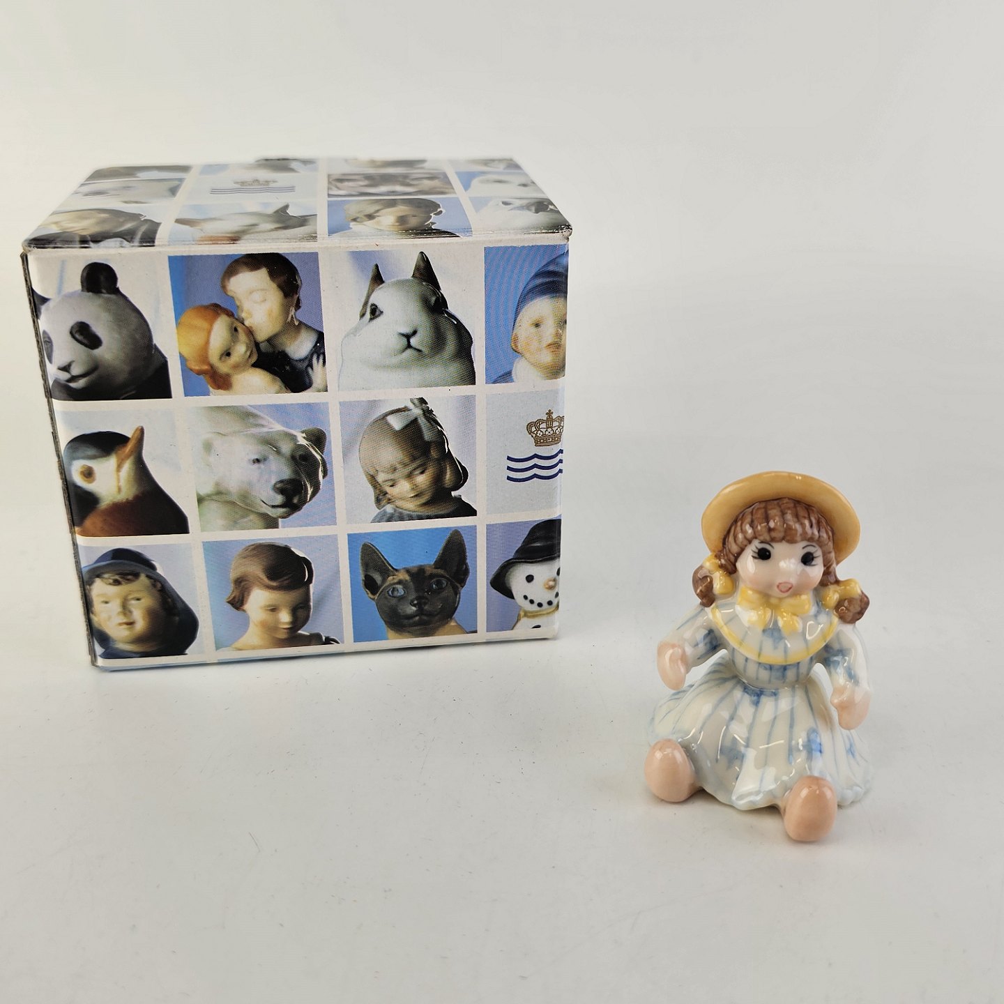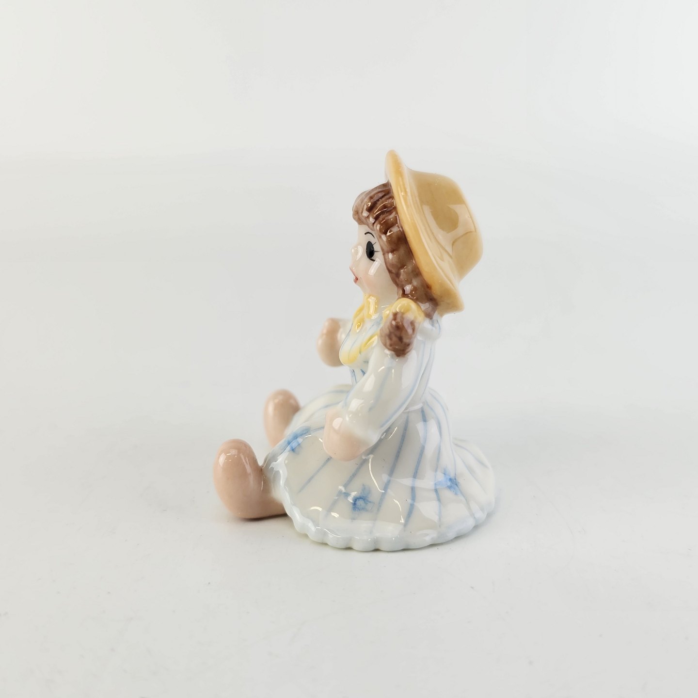Beskrivelse: Figur af en siddende dukke i porcelæn fra serien Mini Collection Toys