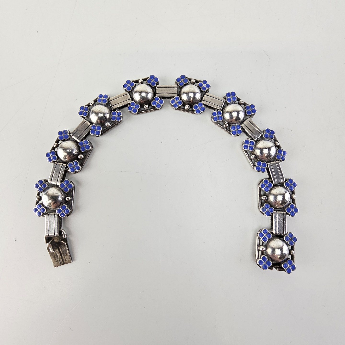Beskrivelse: Armbånd i 830 sølv med blå sten