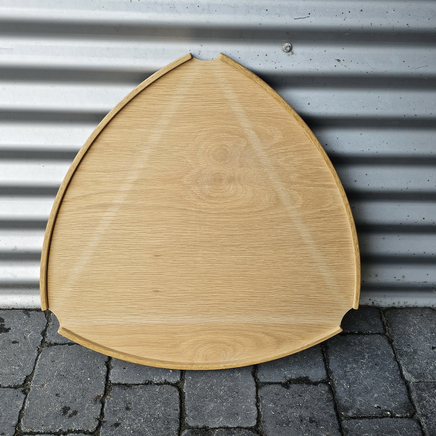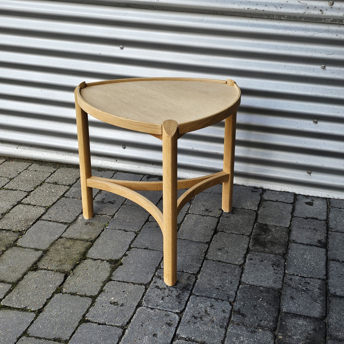 Beskrivelse: Trebenet bord i eg med aftagelig bakke