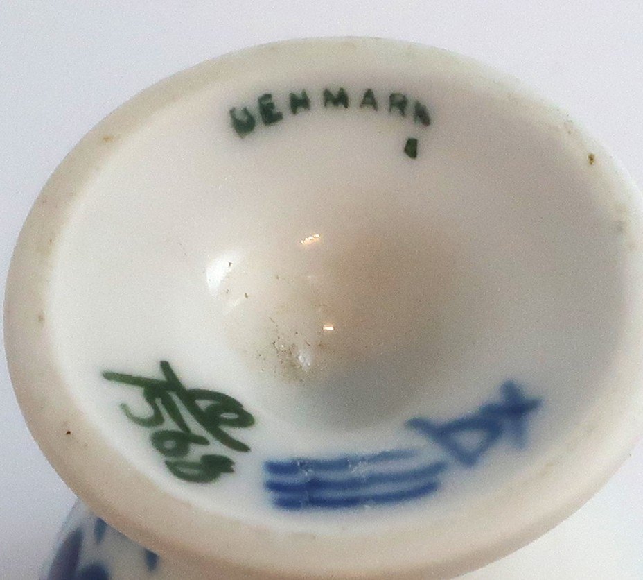 Beskrivelse: Royal Copenhagen. Blå blomst, svejfet. Æggebæger. Model 1568. Højde 6,5 cm. (3 sortering)