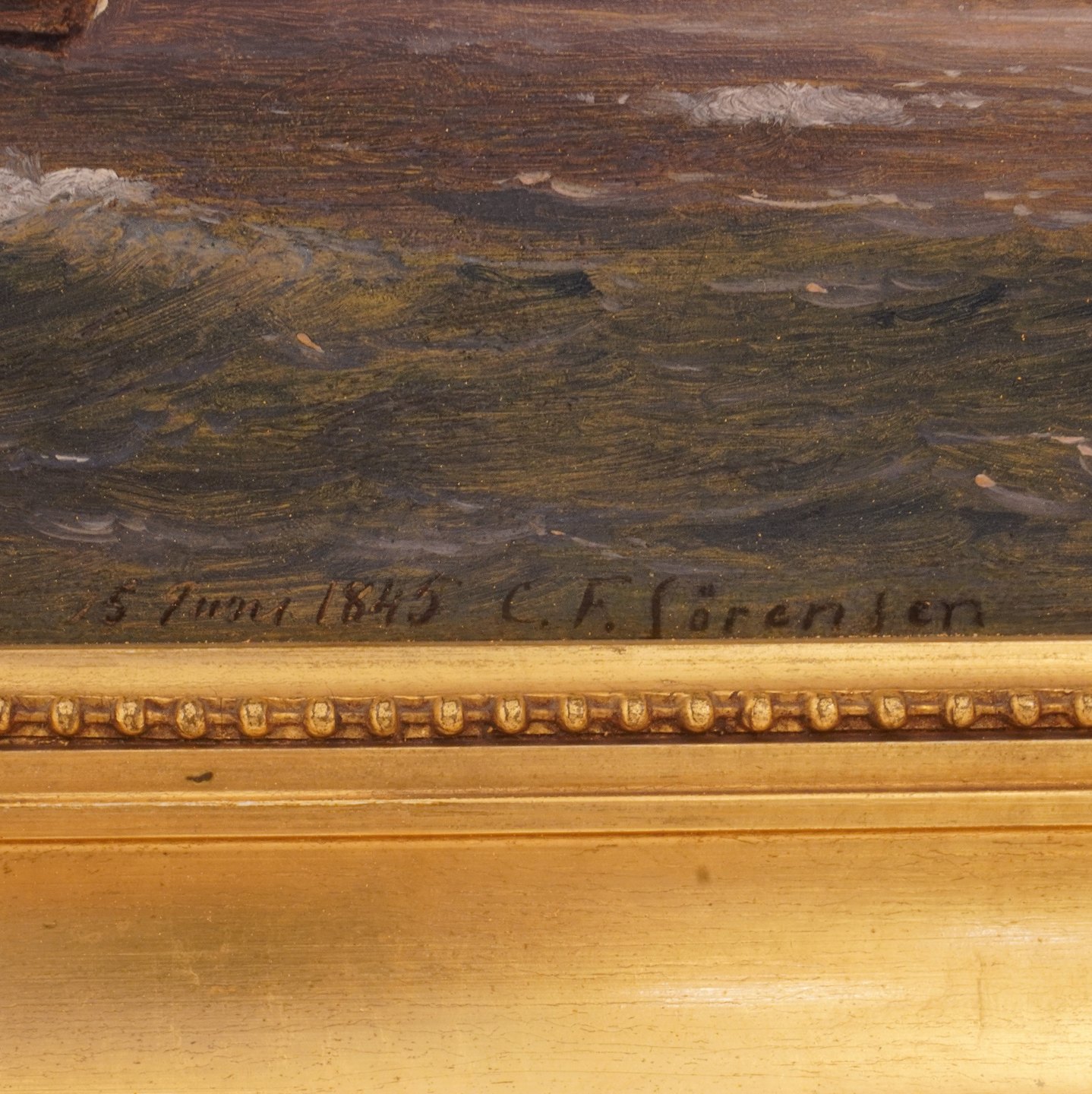 Carl Frederik Sørensen, 1818-79, olie på plade. Marinemotiv. Signeret og dateret 5. juni 1845. Lysmål: 23x33cm. Med ramme. 29x39cm