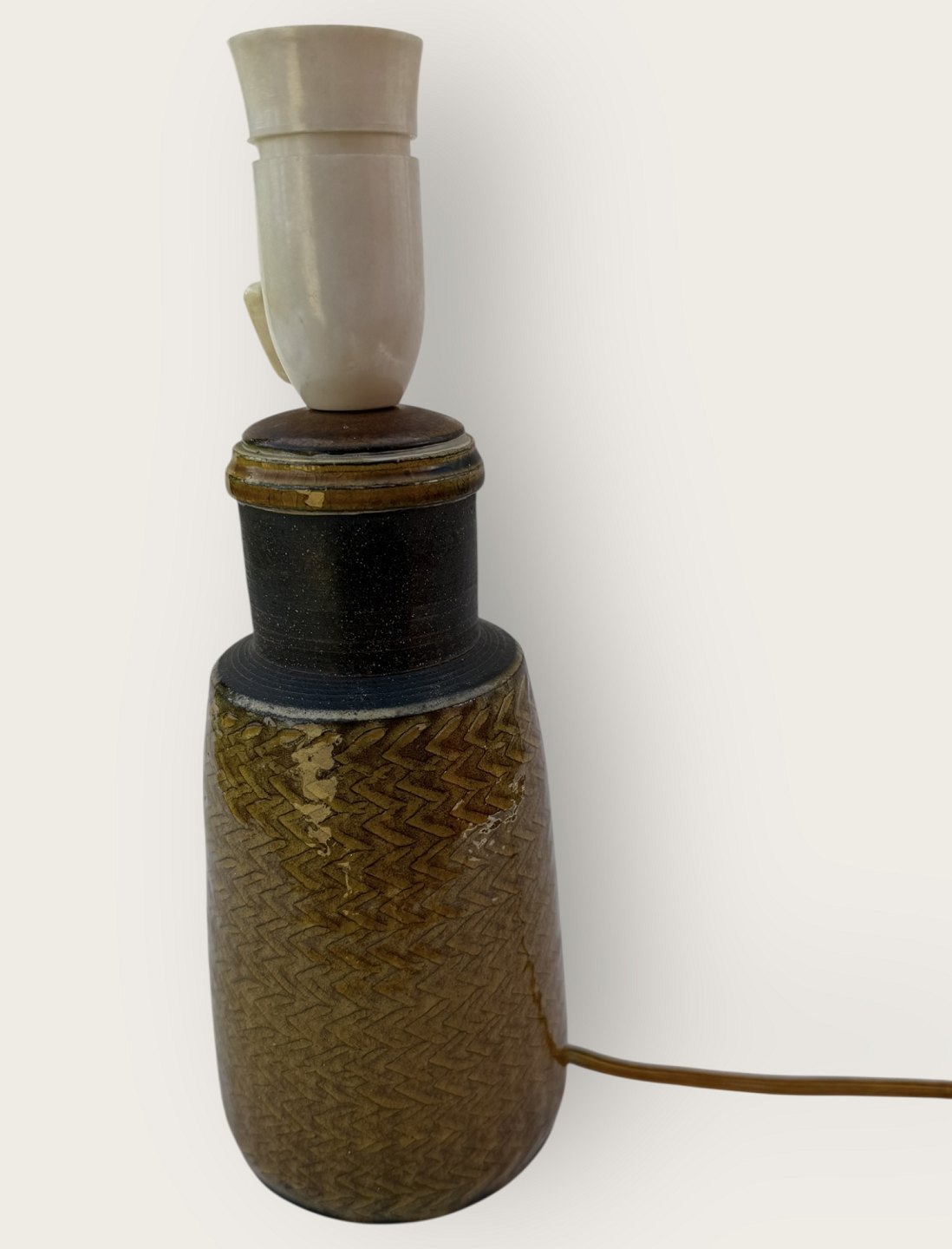 Beskrivelse: Kähler keramik, Glaseret bordlampe gul/grøn, 27,5cm høj (incl. fatning), Signeret HAK Nils *Pæn stand*