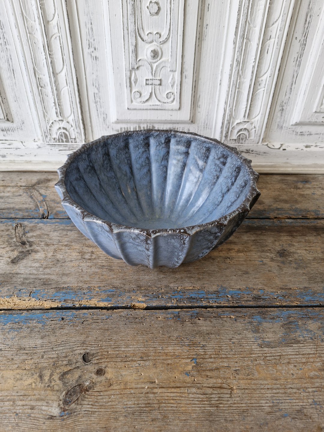 Beskrivelse: Michael Andersen stor riflet skål med smuk blå glasur