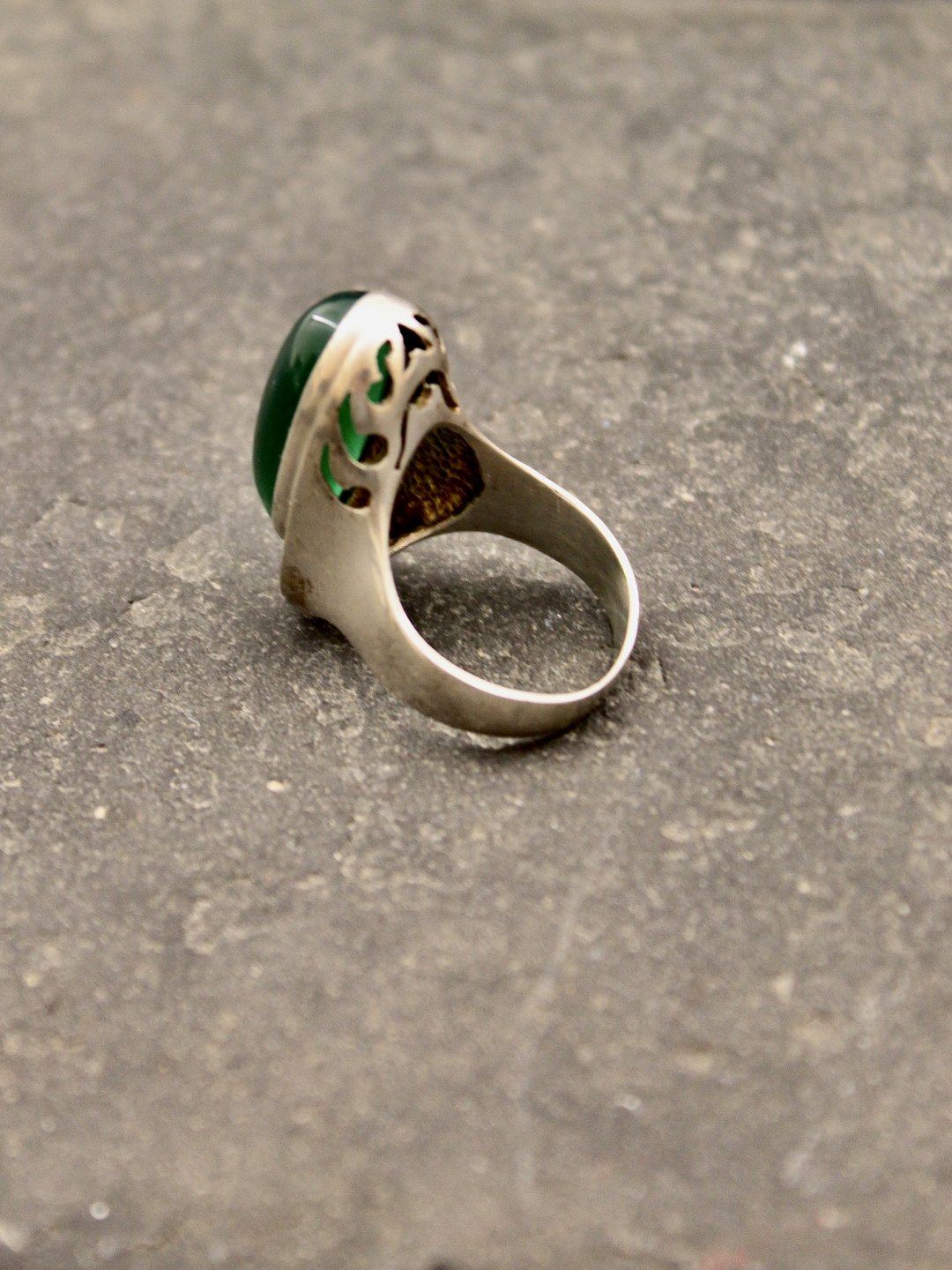 Description: Sterling silver ring size 58 with cabochon cut green stone item no. 621100