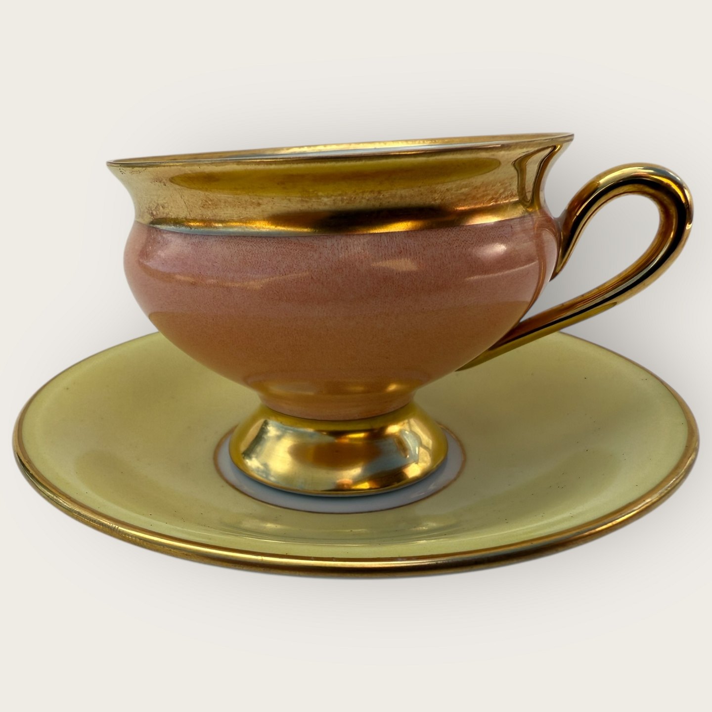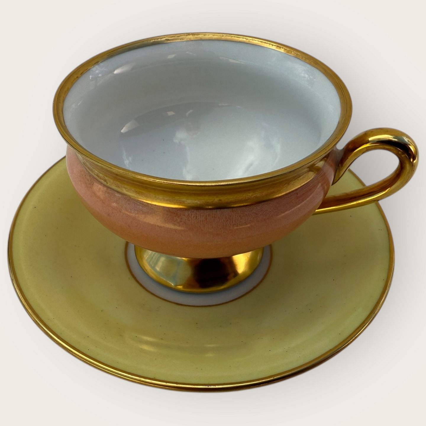Description: Lyngby, Copenhagen porcelain painting, Empress, Espresso cup, Yellow saucer, red-brown cup, cup 7cm in diameter and 5.5cm high, 2nd grade *Good condition*