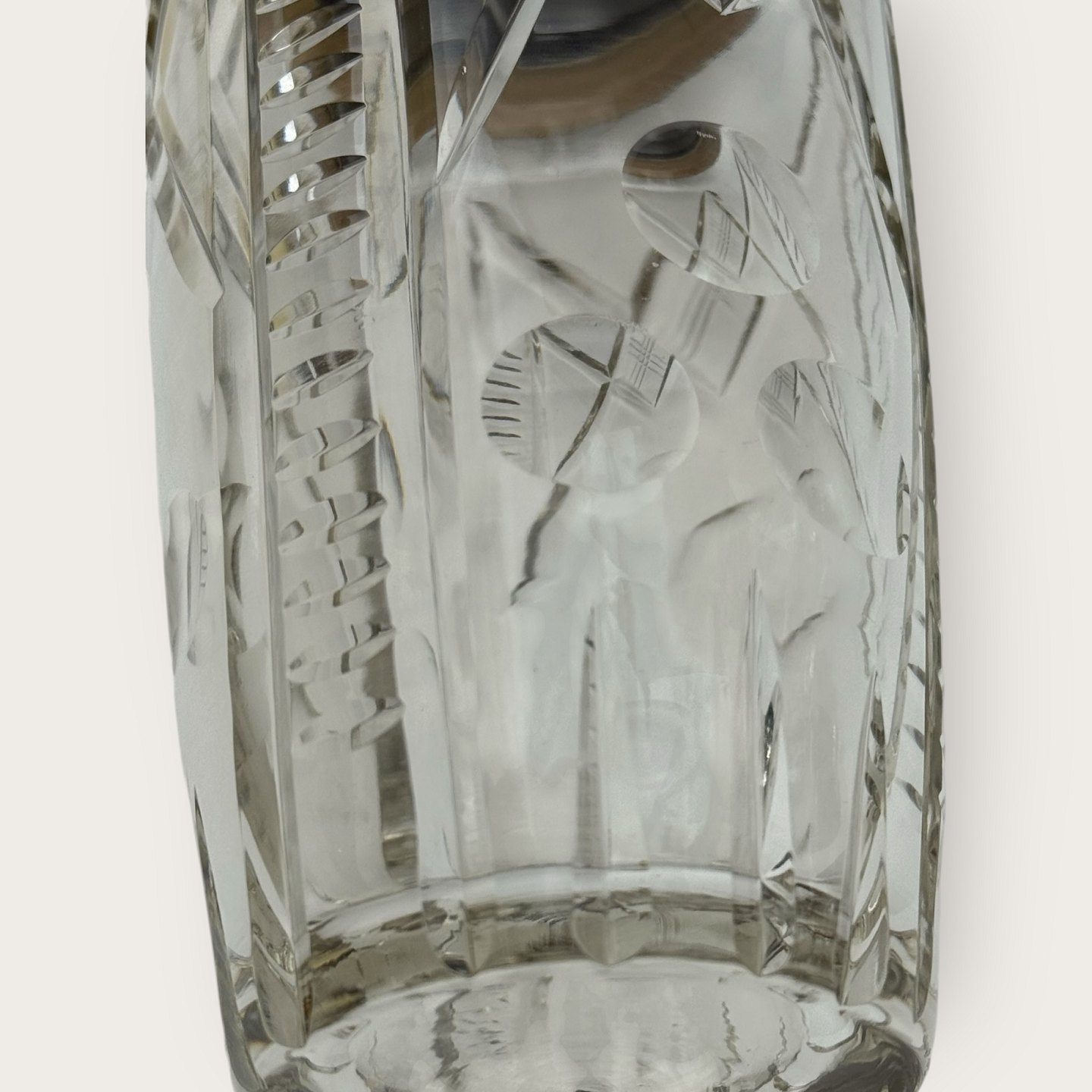 Beskrivelse: Ældre cocktail shaker i tykt glas og med mange slibninger, højde 25cm, flot stand