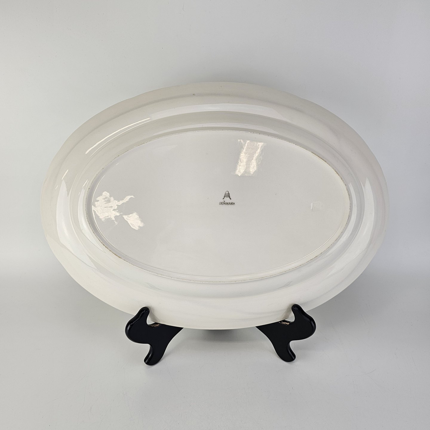 Beskrivelse: Mellem størrelse ovalt fad i cremefarvet fajance fra stellet Alma
