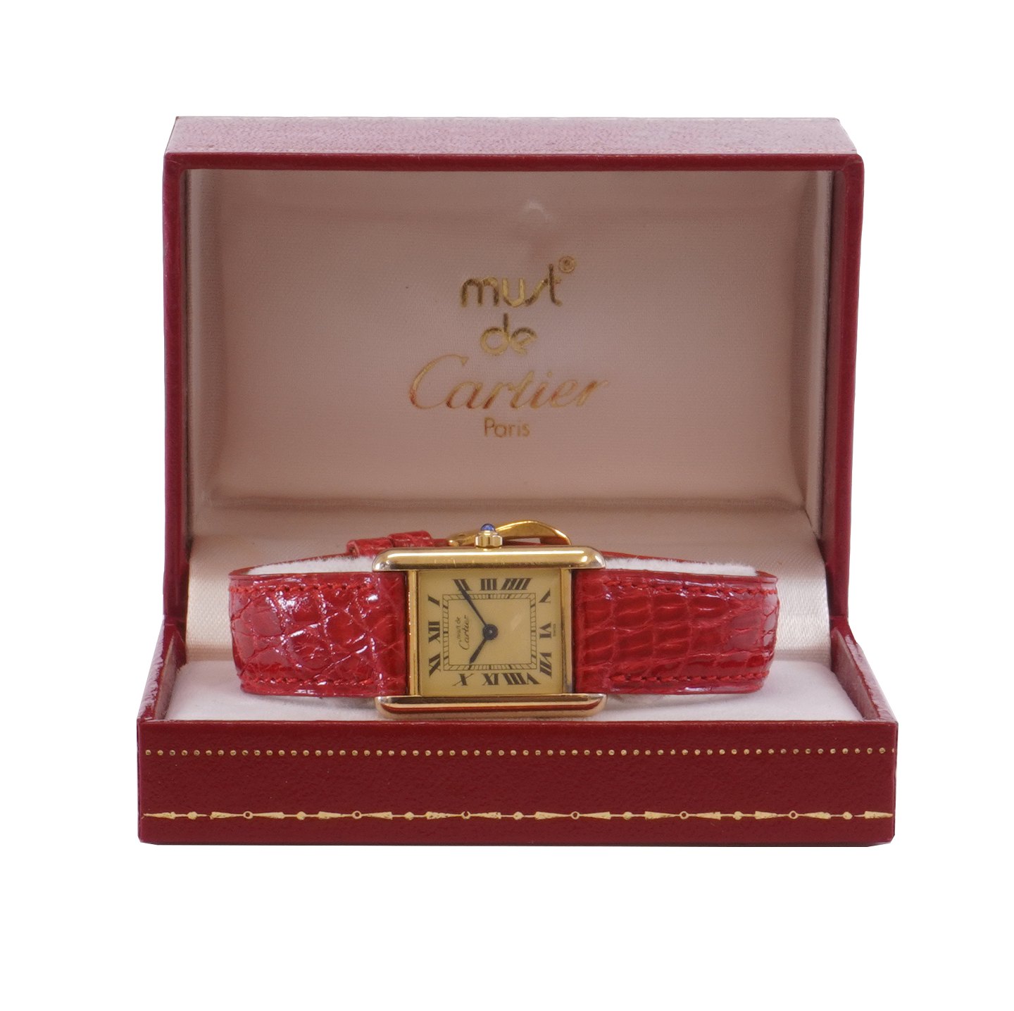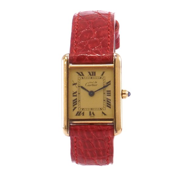 Beskrivelse: Cartier Tank Vermeil Quartz i forgyldt sterling sølv med certifikat år 1994